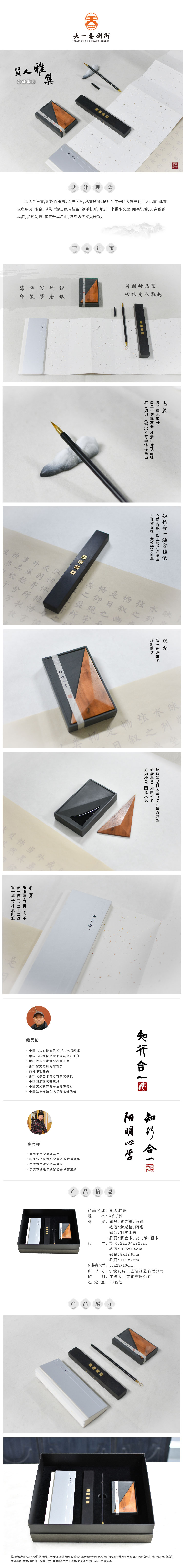 羽诗制造出品 贤人雅集套装镇尺毛笔砚台本册文房文创礼盒