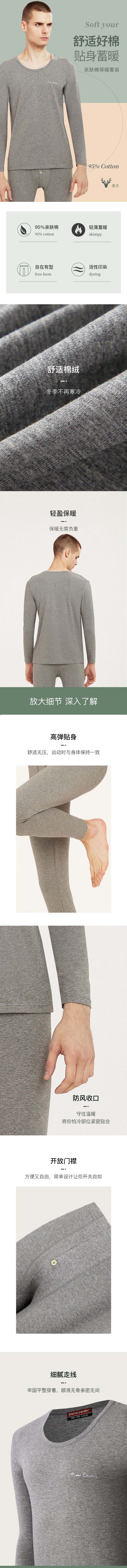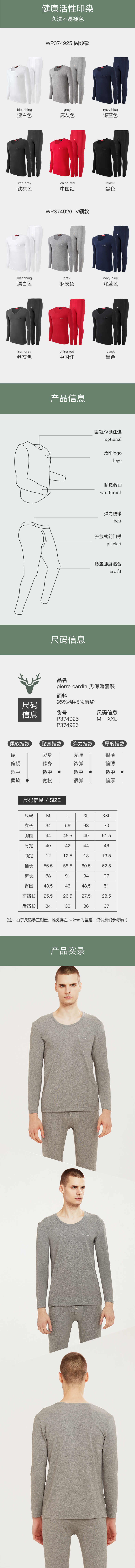 【惊喜价】皮尔卡丹男士纯棉保暖内衣套装圆领V领秋衣秋裤打底保暖内衣秋冬保暖套装