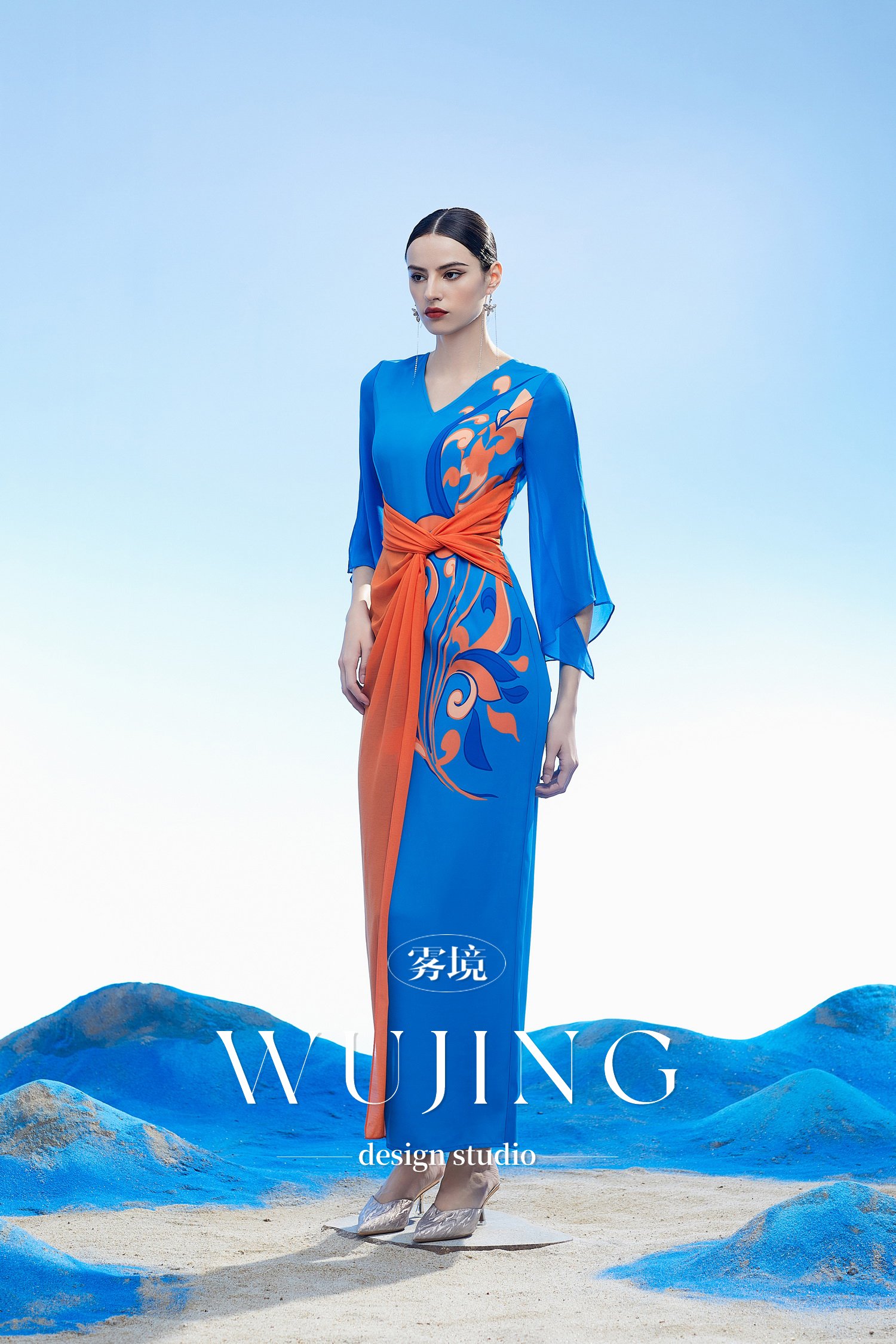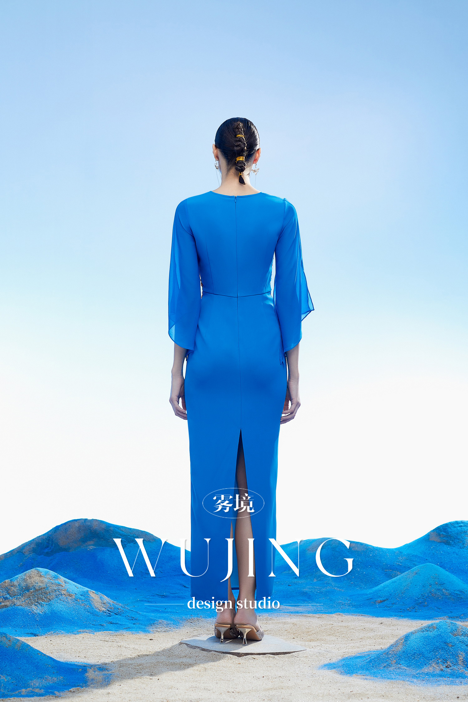 3204077 灵泽岚霏 韩国进口水晶乔其纱进口纹理蜂窝缎连衣裙 雾境