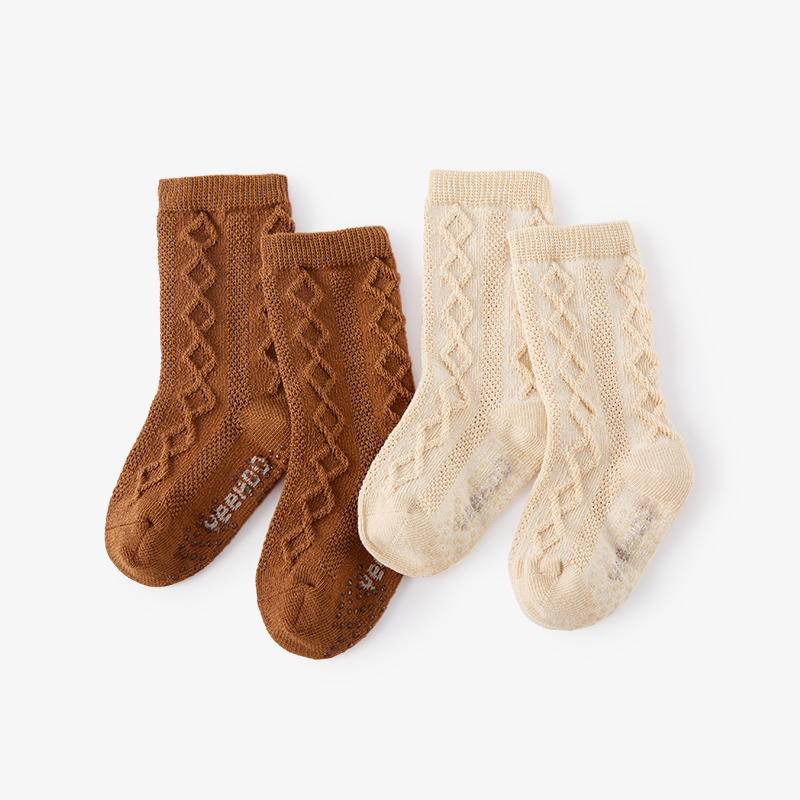 英氏婴儿长筒袜男女宝宝纯棉透气四季款提花花纹袜子YIWJJ02134A