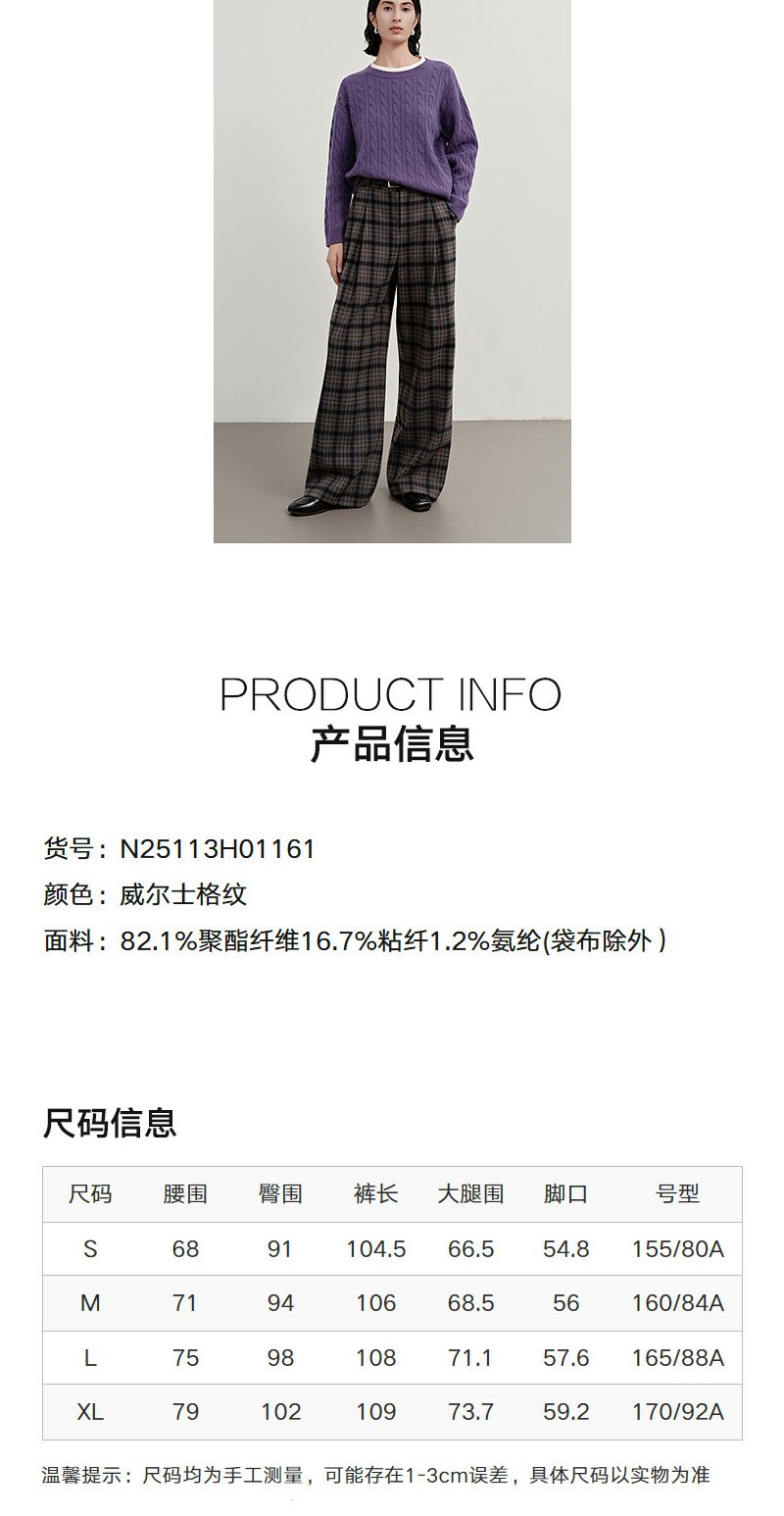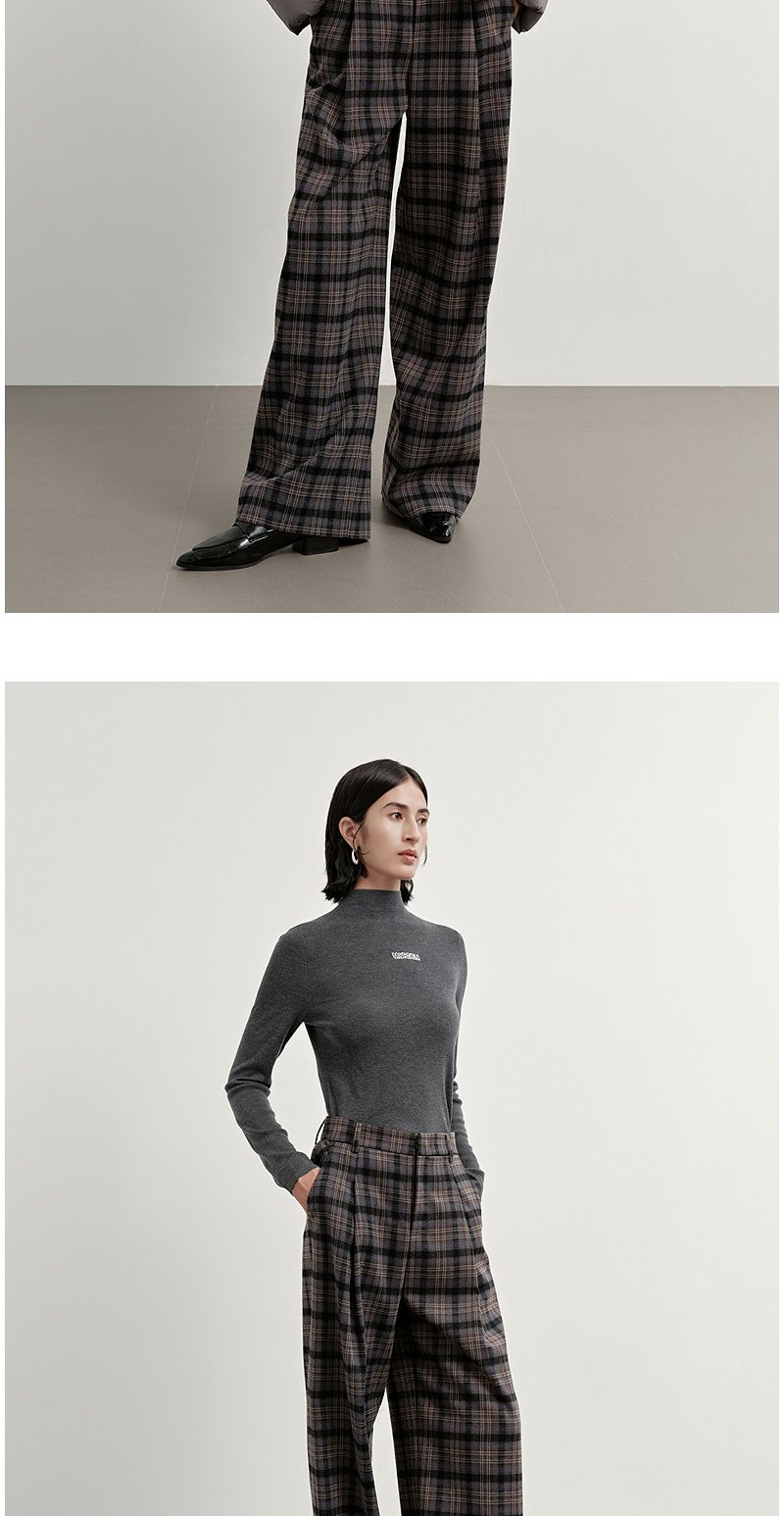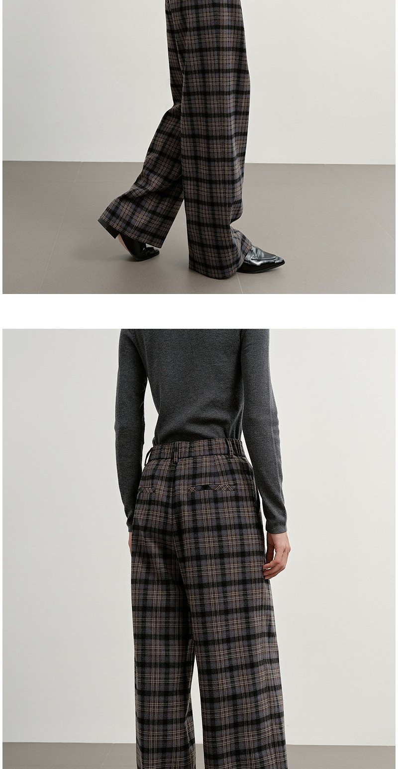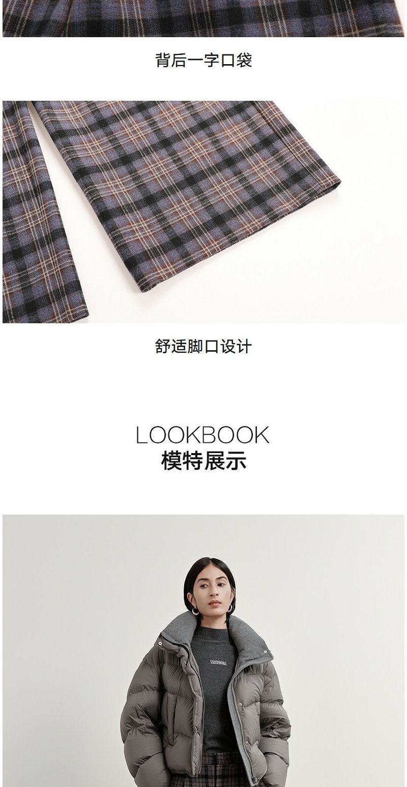 NEELLY纳俪商场同款冬季新款复古格纹休闲阔腿裤女百搭时髦长裤N25113H01161