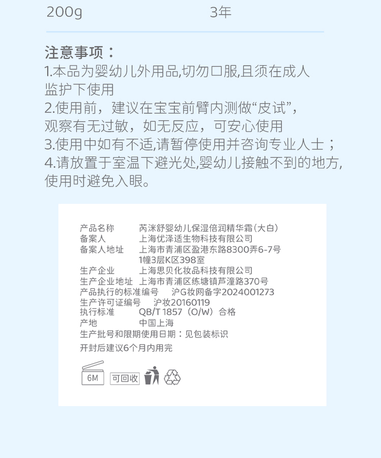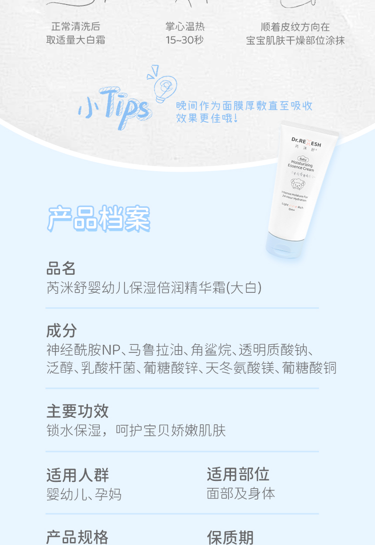 芮洣舒大白婴幼儿保湿倍润精华霜