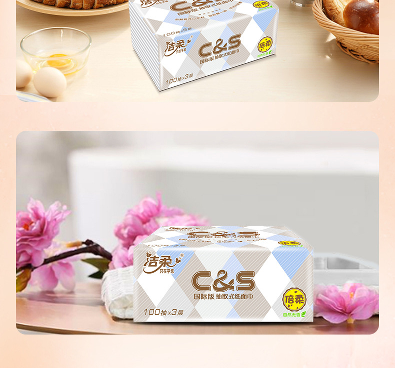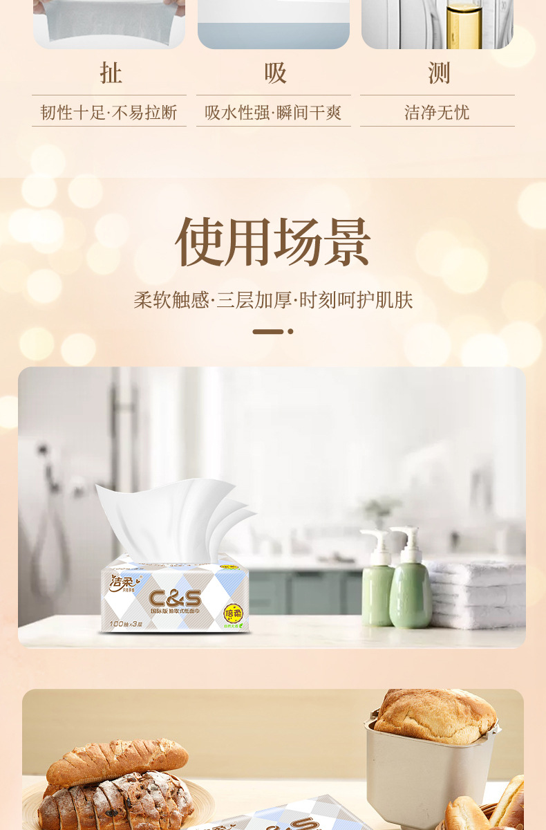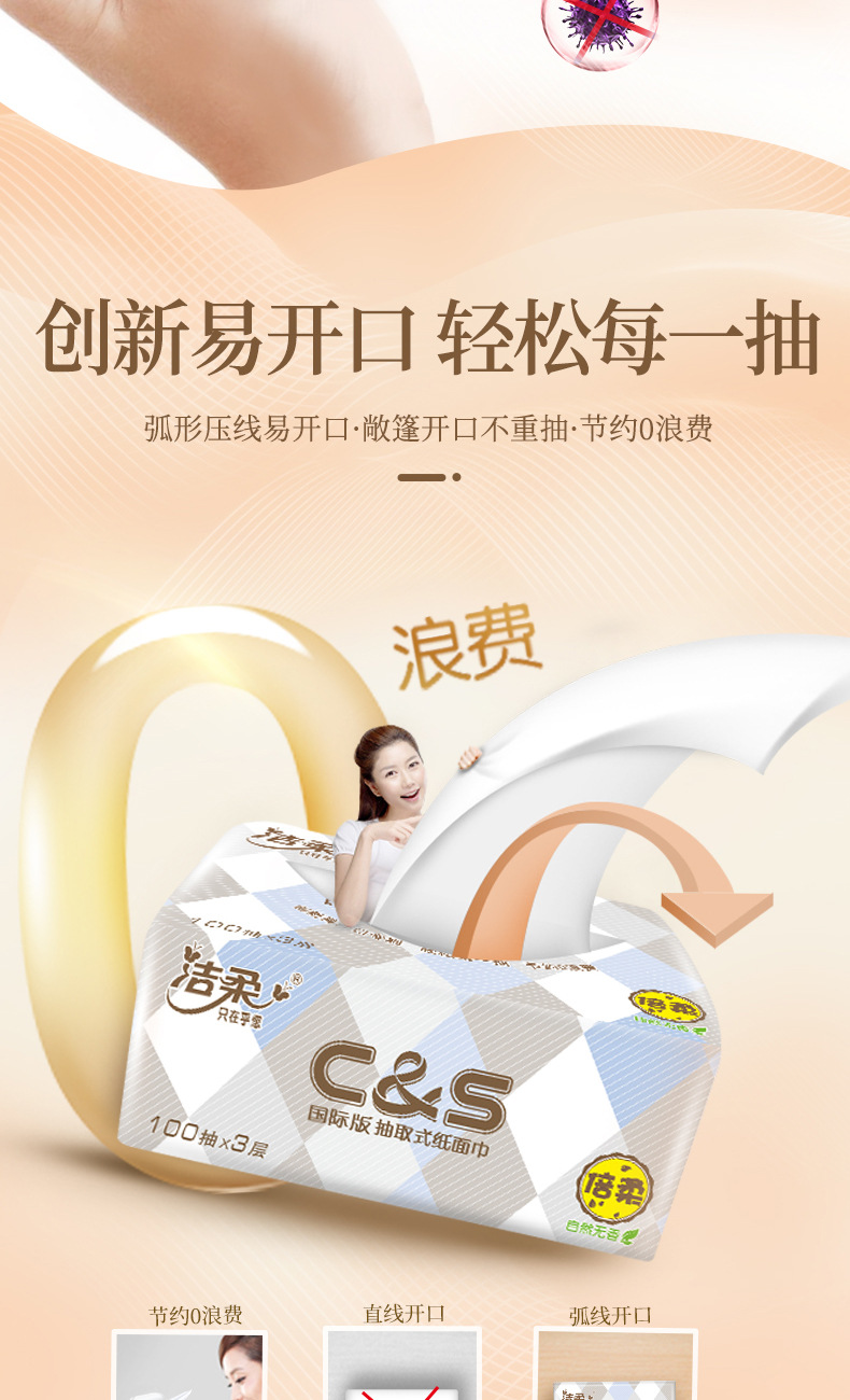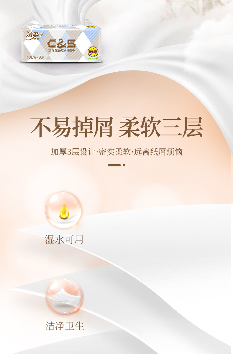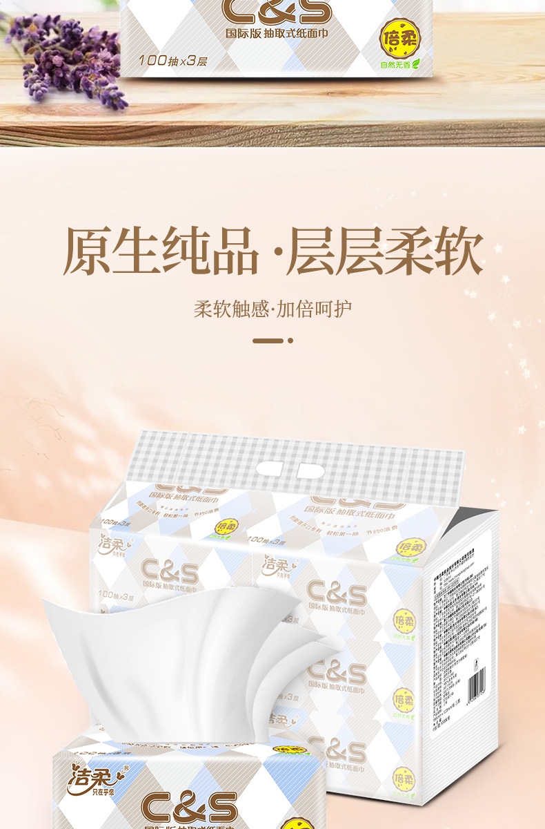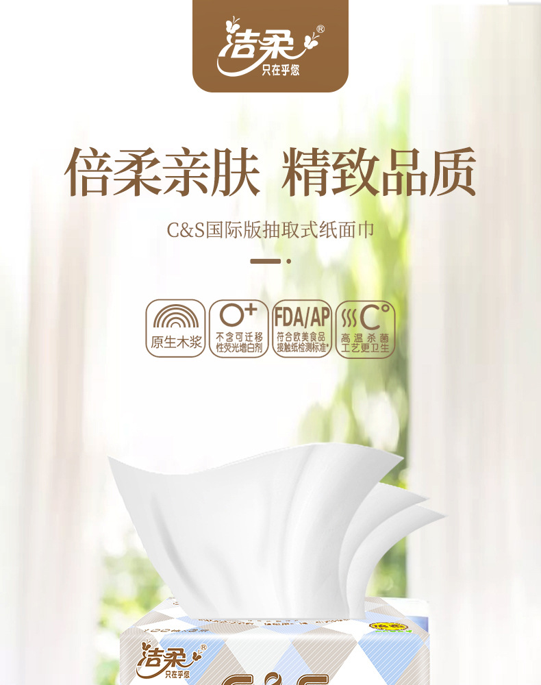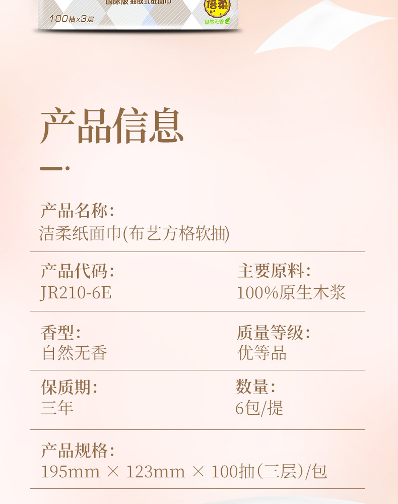 【洁柔抽纸卫生纸】3层100抽6包/提 一提纸巾餐巾纸居家日用清洁工具