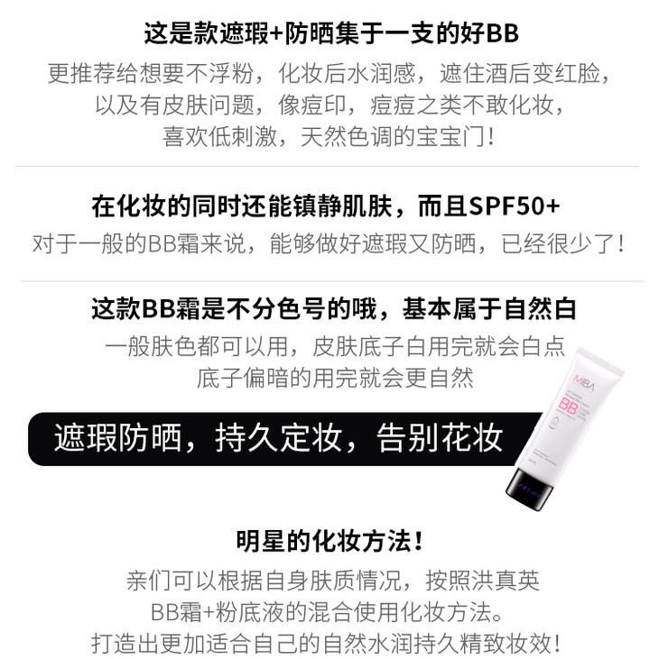 【现货】韩国洪真英同款MIBA矿物钙离子BB霜持久遮瑕不脱妆粉底液网红李佳琪