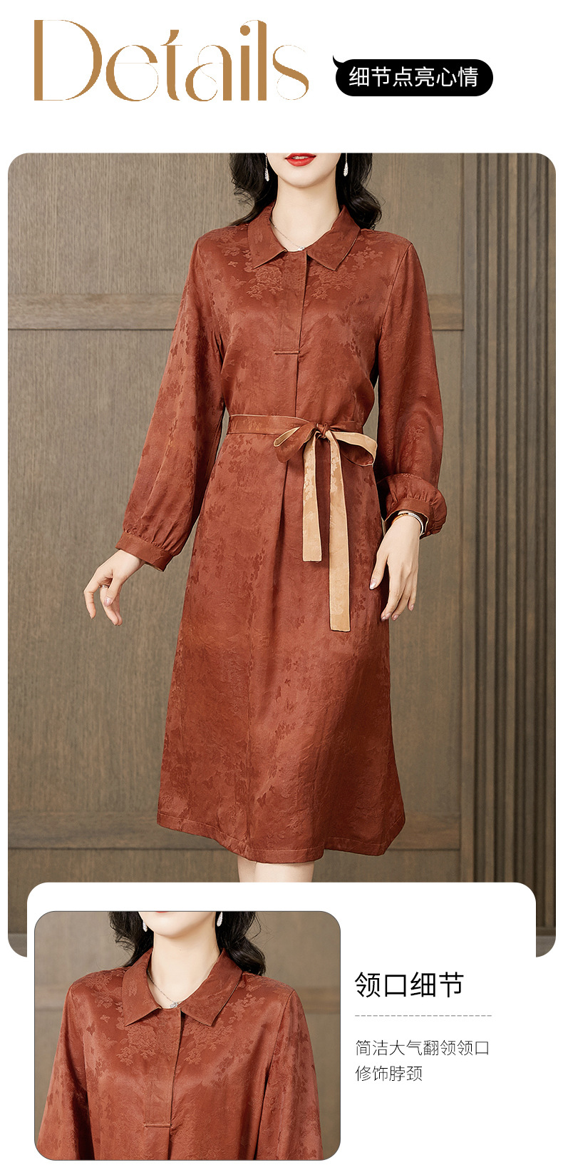 气质干练收腰,香云纱时尚桑蚕丝A字连衣裙KQN-221536