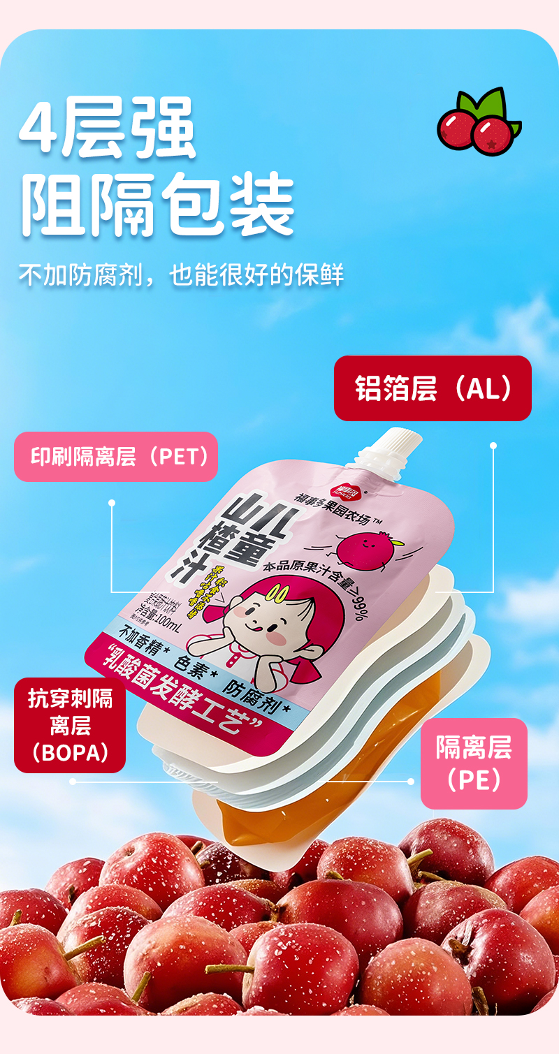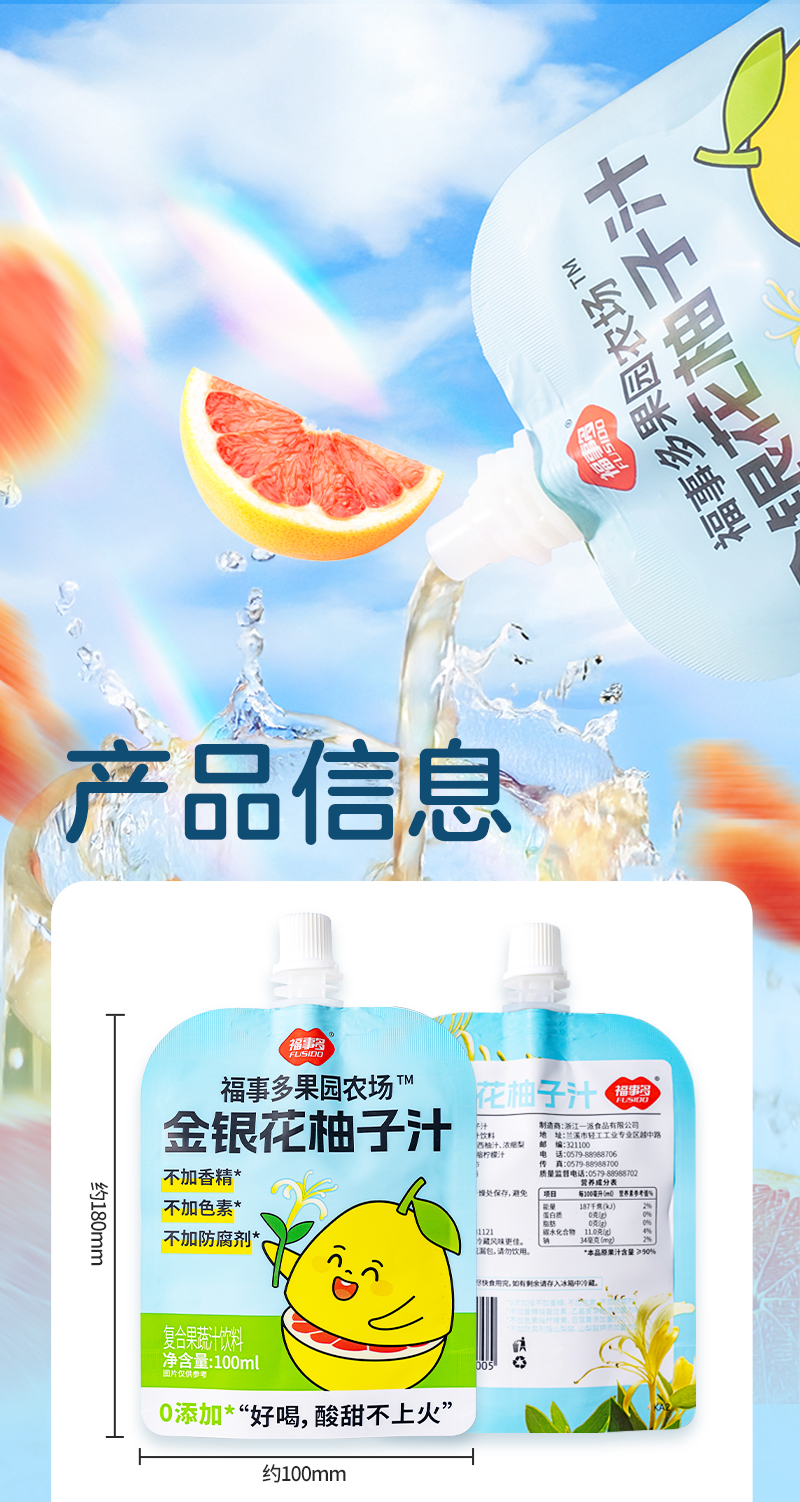 福事多 金银花柚子汁/山楂汁100ml*12袋 无香精色素防腐剂,下火植物饮料,草本+鲜果神仙CP,0脂轻负担畅饮无压力,多重营养润到心坎
