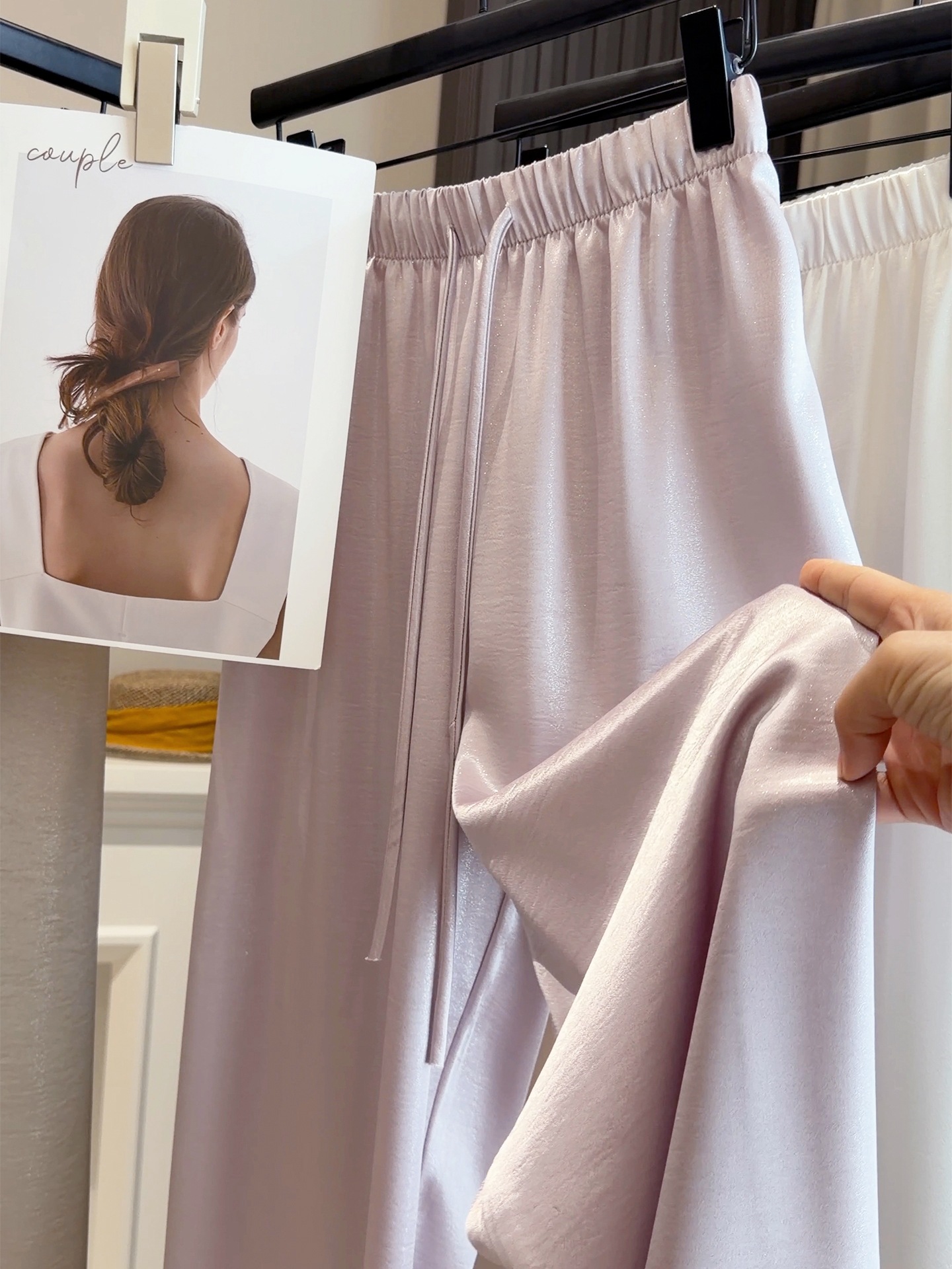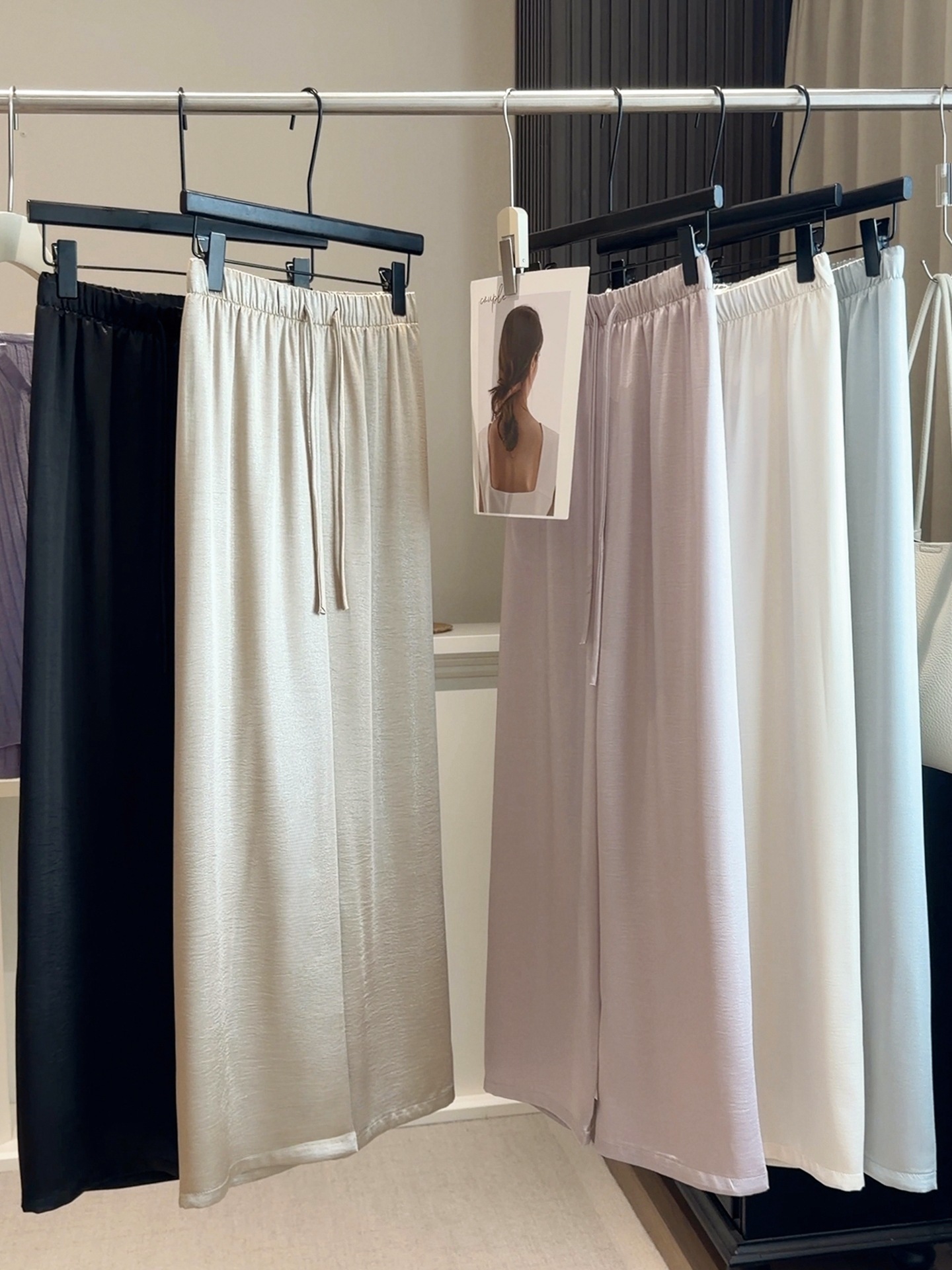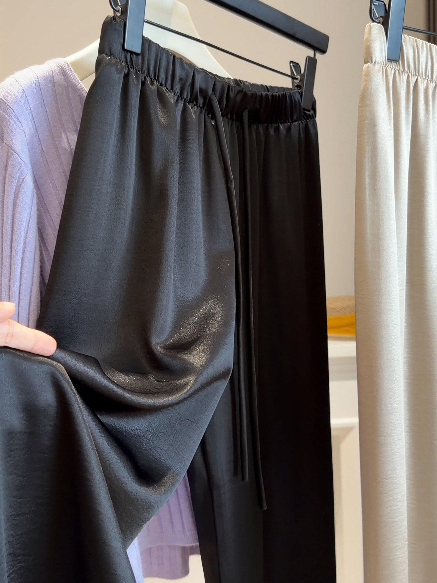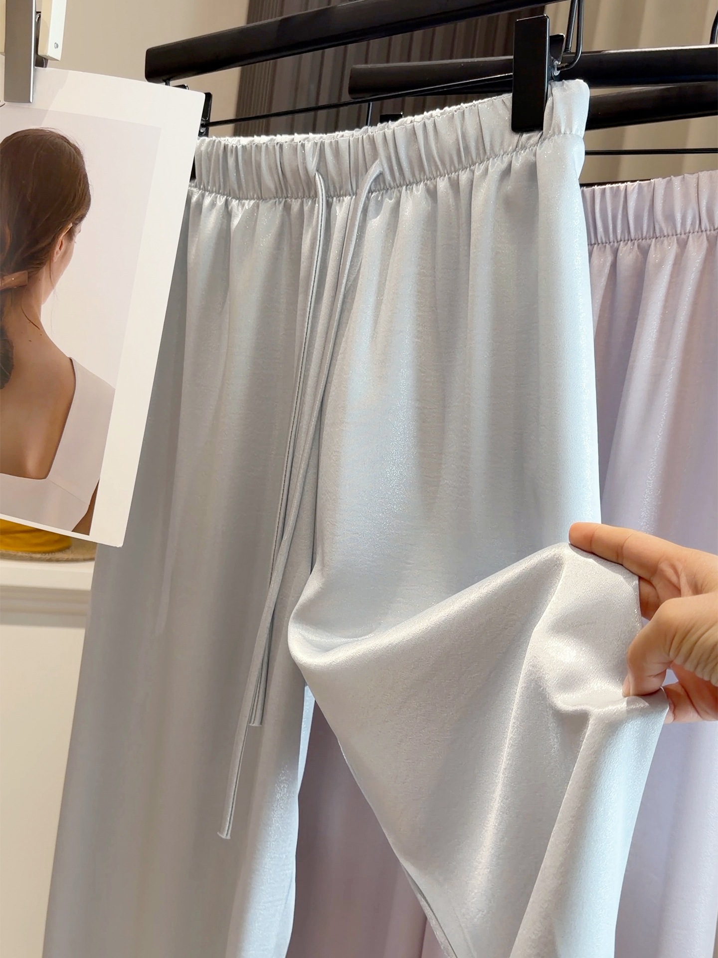 【水光缎面丝滑醋酸阔腿裤】26春夏季新款 抽绳冰丝凉凉休闲宽松直筒裤