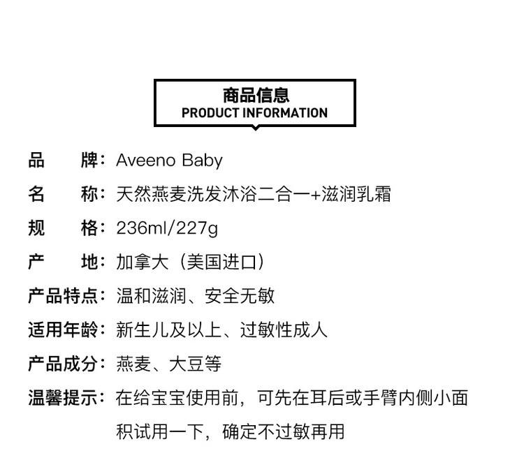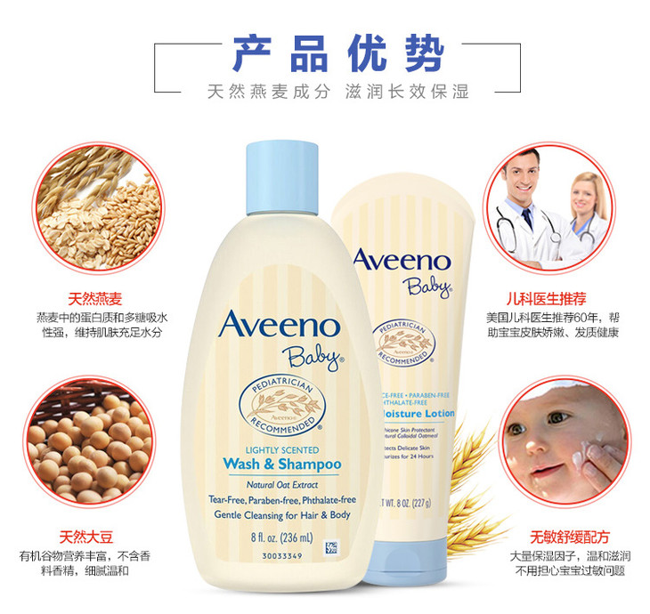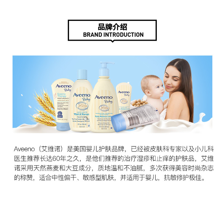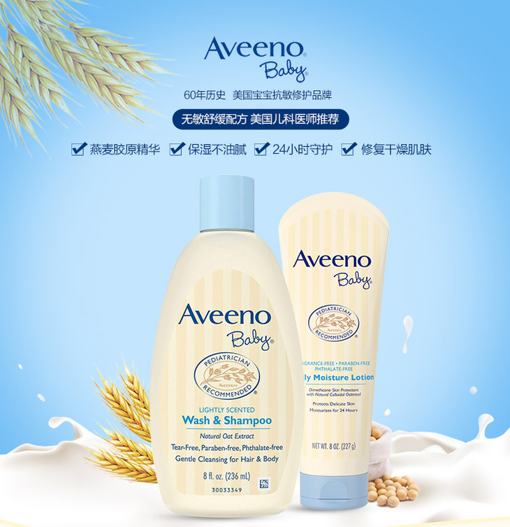 【保税仓】Aveeno Baby 艾维诺 婴儿保湿洗护套装 保湿乳液浅蓝227g&洗发沐浴二合一236ml