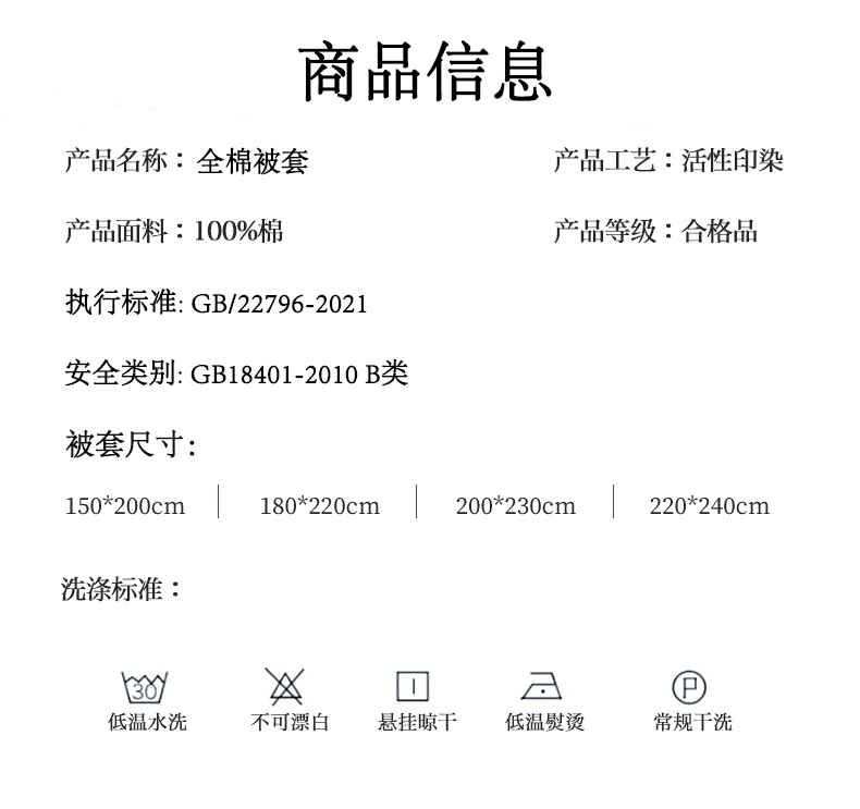 【品牌直发】加倍生活 高密全棉亲肤被套 纯色/印花可选 优选新疆棉花 多尺寸规格