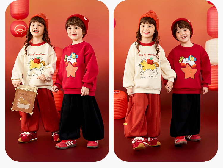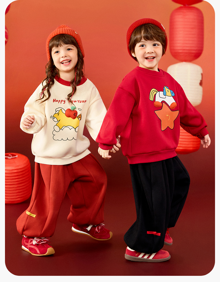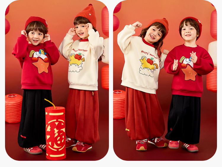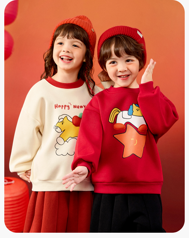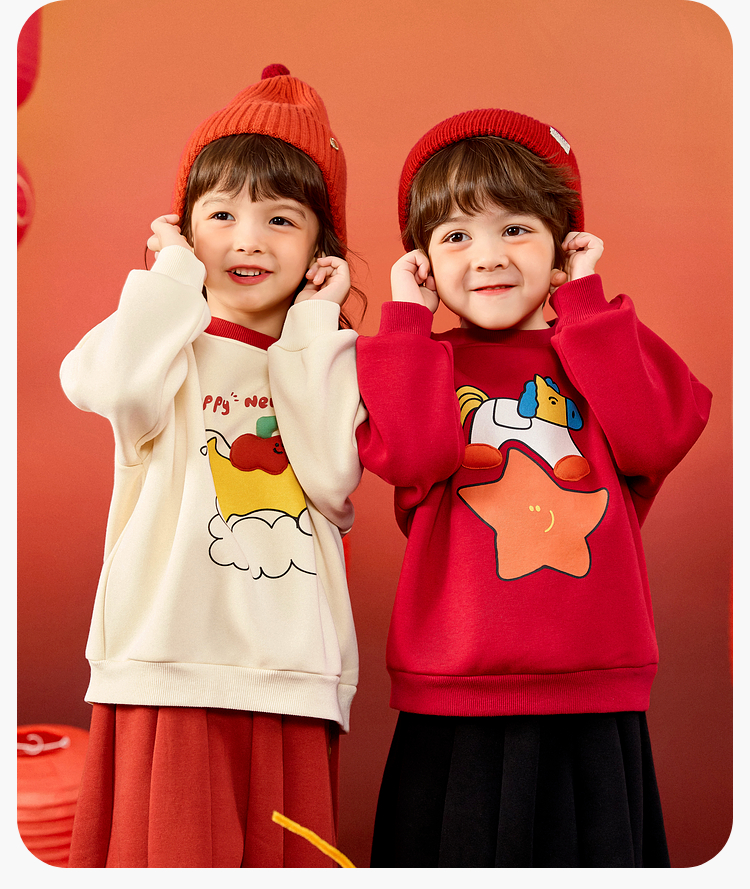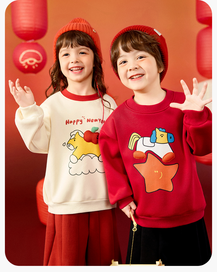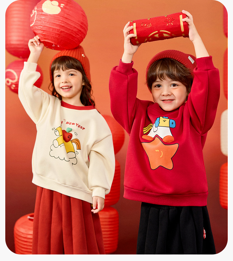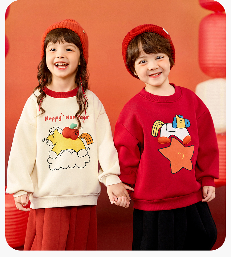 嘟嘟家童装儿童新年卫衣冬季加绒保暖男童拜年服女童过年衣服喜庆