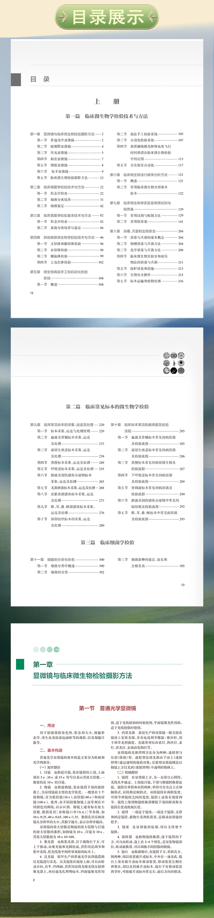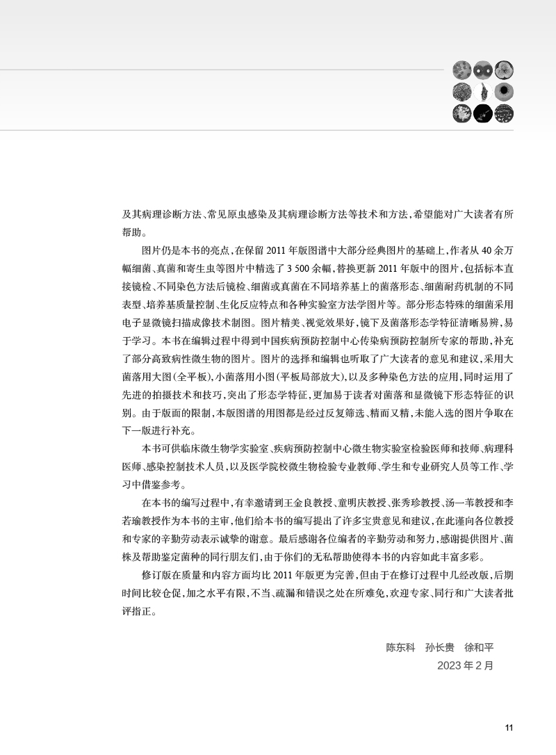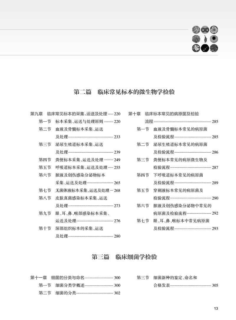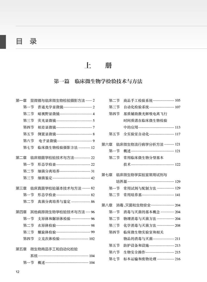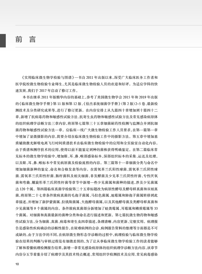 本版保留了第1版图谱中病原菌在各种临床实验室常规使用培养基上的菌落形态和不同染色方法的镜下形态,并在原九篇基础上新增了抗病毒药物和敏感性试验方法、抗寄生虫药物和敏感性试验方法及常见病原体的病理学组织切片染色形态学诊断方法等3章内容。应临床一线广大微生物检验工作人员要求,在第一章中增加了显微摄影的内容,简要介绍在临床微生物检验工作中的摄影方法。第五章微生物商品手工和自动化检验系统中增加基质辅助激光解吸电离飞行时间质谱技术在临床微生物检验中的应用和全实验室自动化内容。第九章临床常见标本的采集、运送及处理中增加眼、耳、鼻、喉部感染标本采集、运送及处理内容。第十一章细菌分类与命名中增加细菌新种的鉴定、命名和合格发表内容。由于质谱和测序技术的应用,使得以前不能鉴定到种的菌株获得明确鉴定。全书内容分为10篇共42章,内容涵盖病原微生物检验技术与方法、病原微生物流行病学分析方法、病原微生物(包括病毒、细菌、真菌和寄生虫)鉴定及药敏试验方法、医院感染与监测方法、临床微生物检验的质量管理与控制等。