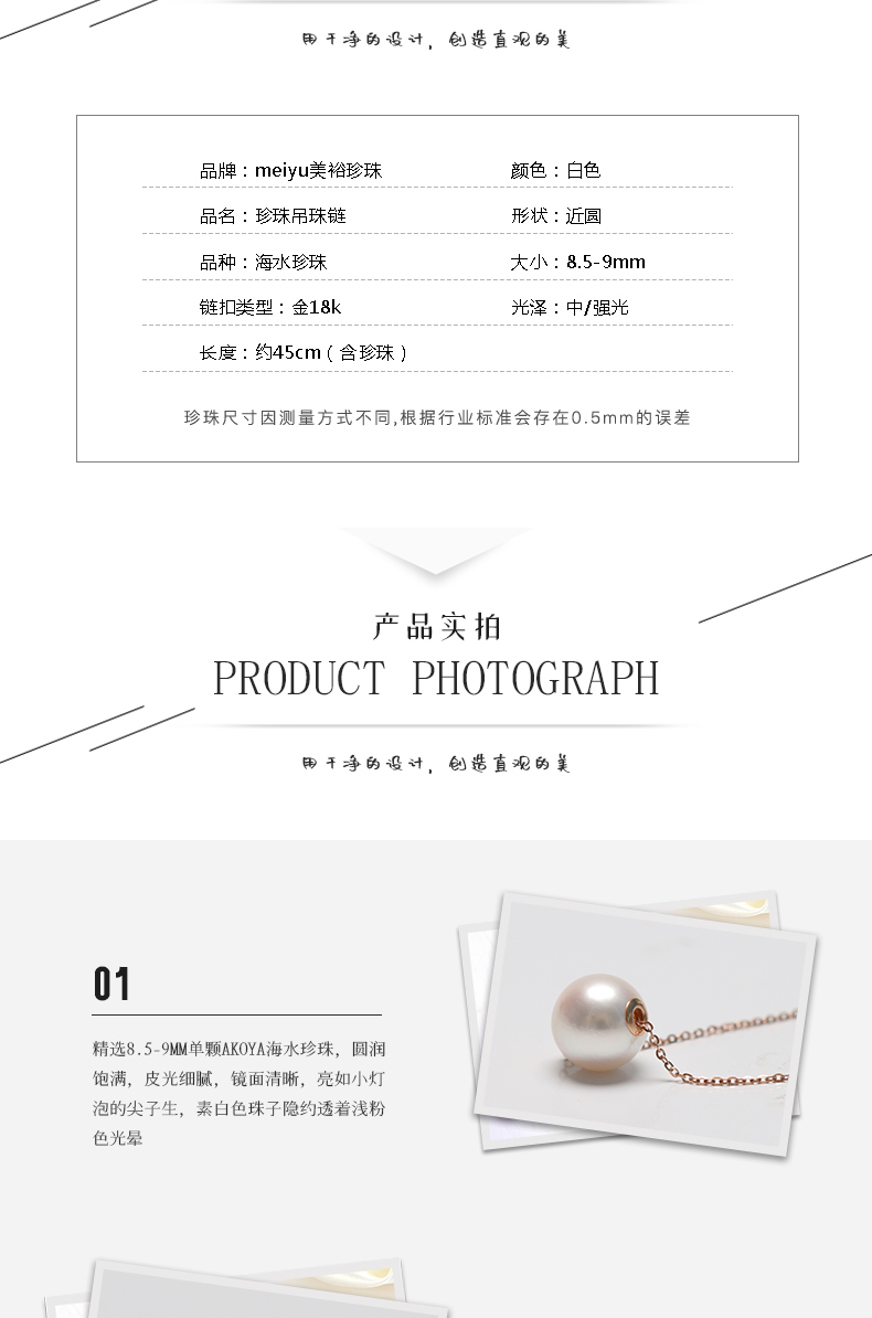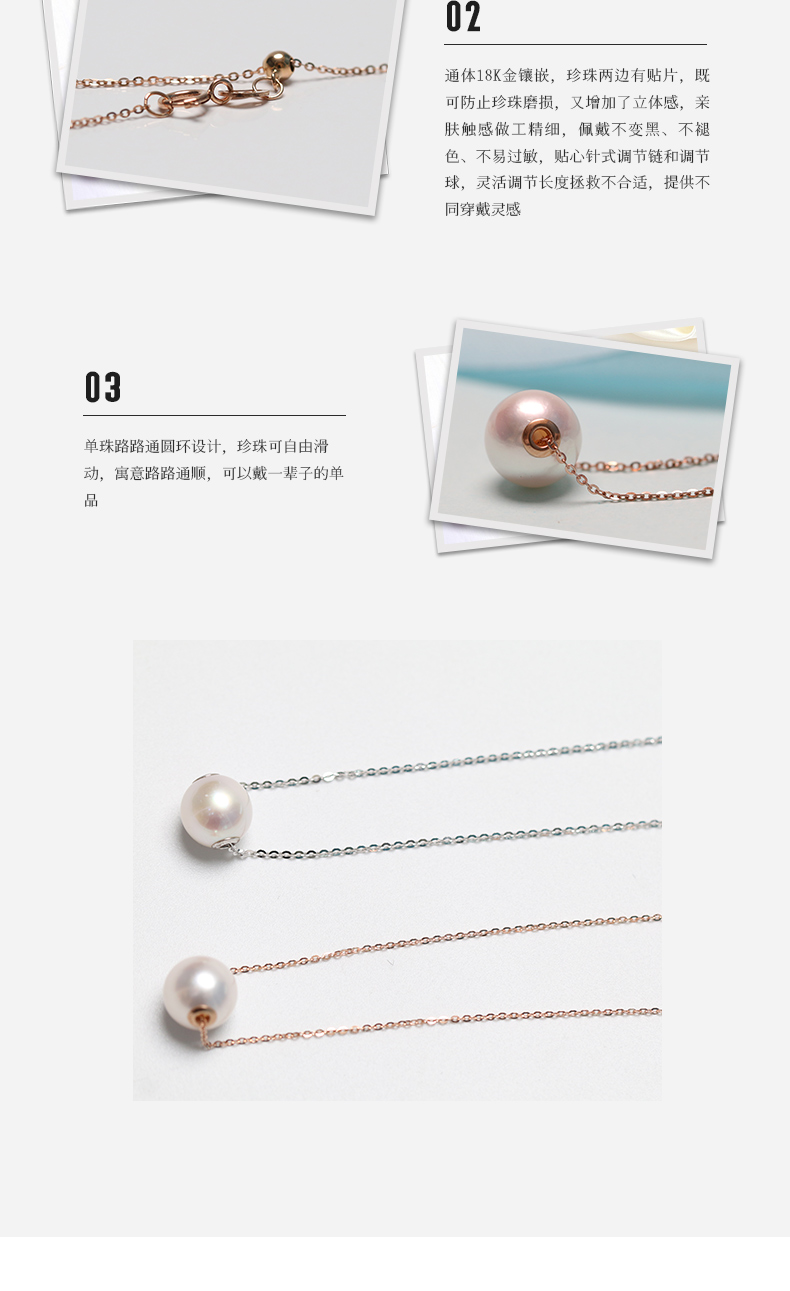 【好运】金18k海水珍珠吊珠链8.5-9mm白新106333 原99221