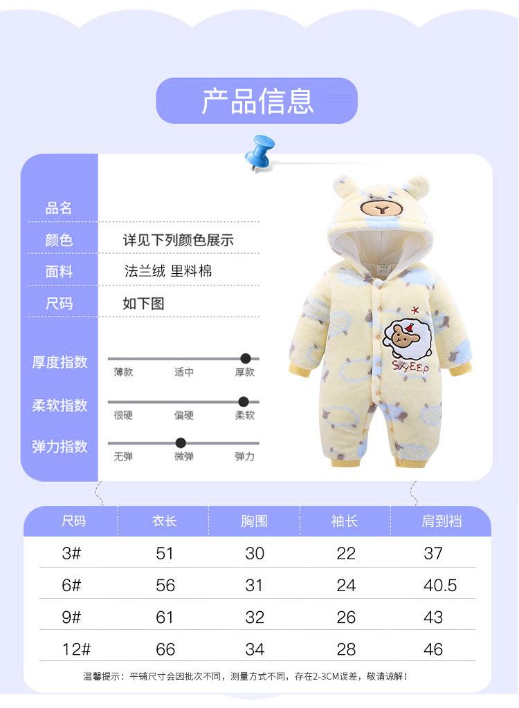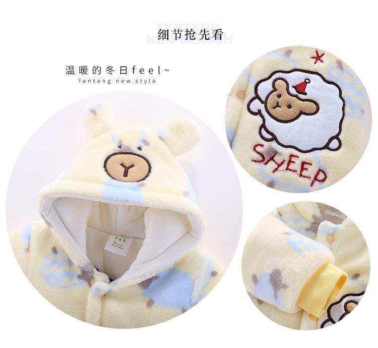 婴幼儿加厚连体衣服哈衣冬季宝宝爬服动物造型厚款连身衣宝宝衣服
