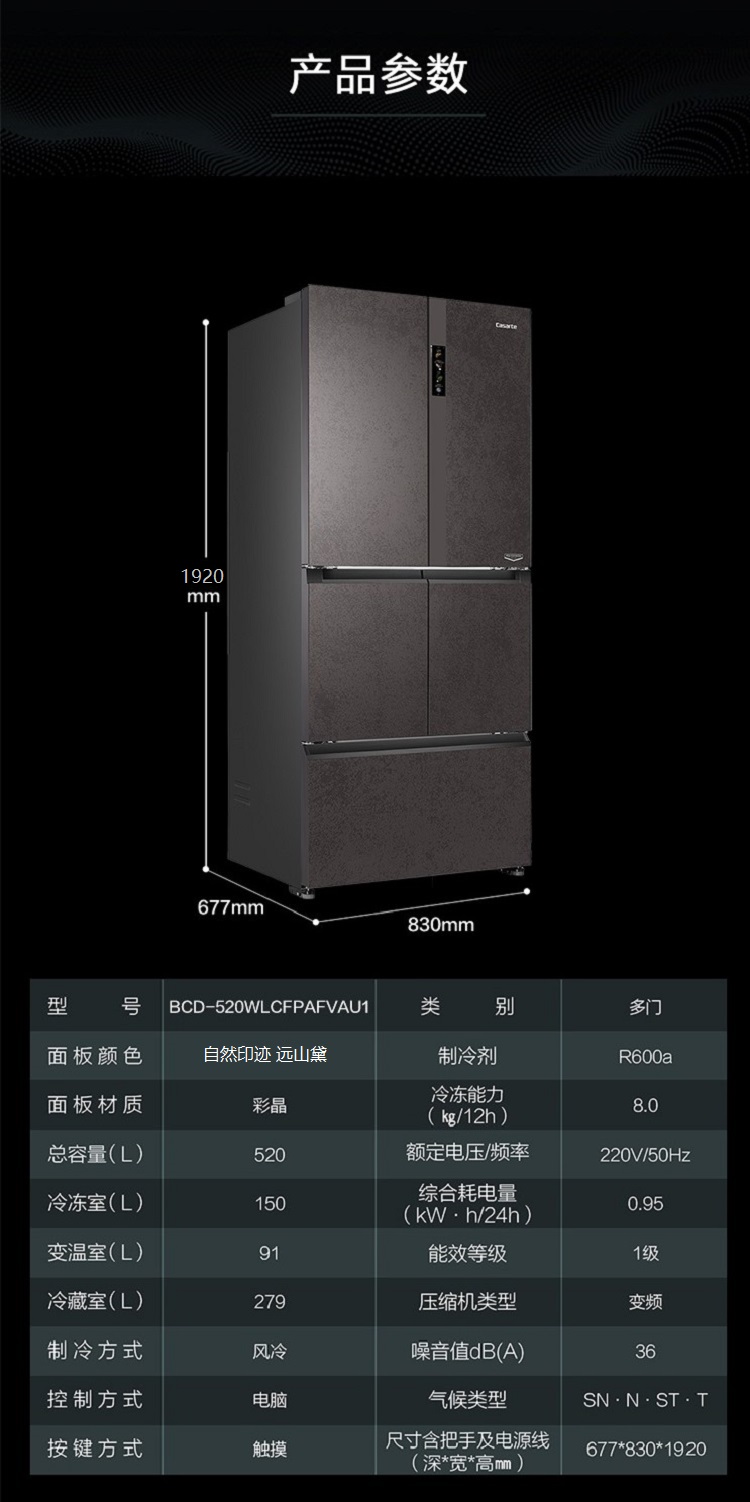 卡萨帝(Casarte)冰箱BCD-520WLCFPAFVAU1