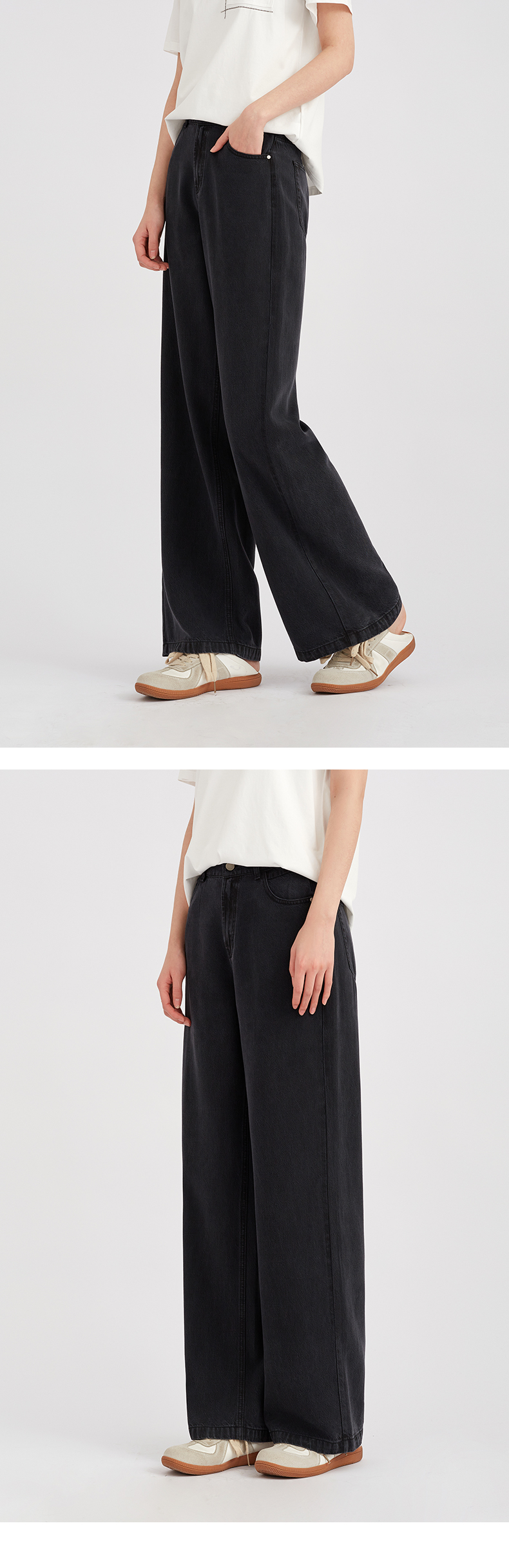 【复古水洗】阿菁娜春季新款复古水洗牛仔裤高级灰调高腰阔腿垂坠显瘦F31C210003