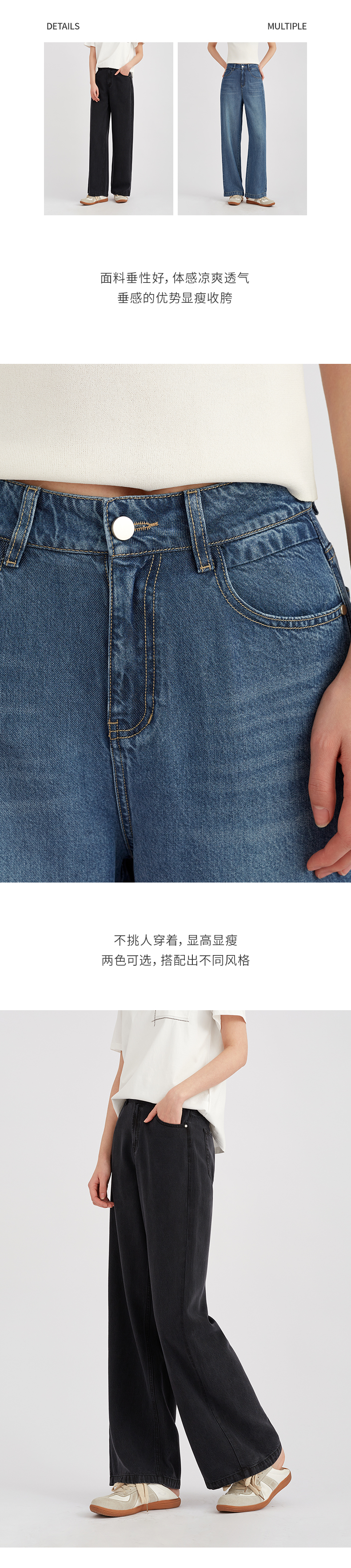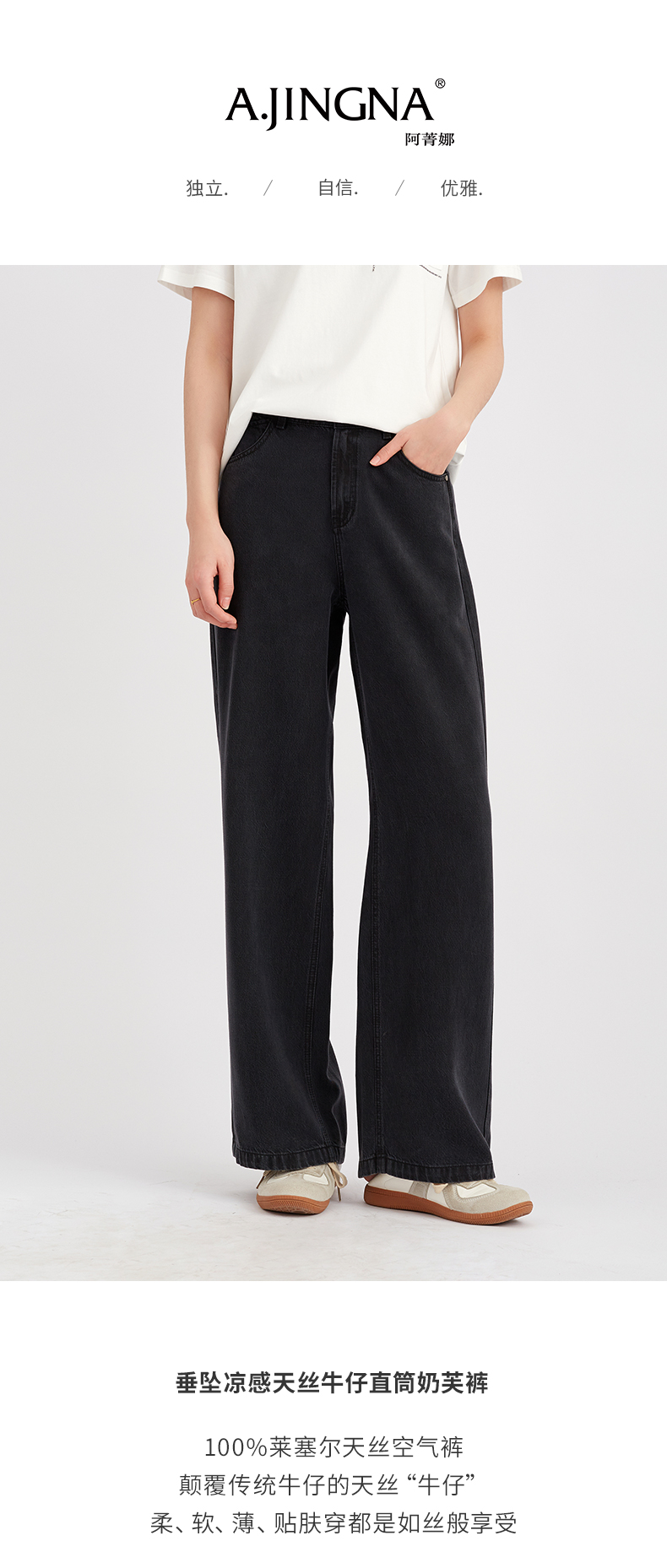 【占据C位】阿菁娜垂坠凉感天丝牛仔直筒奶芙裤F30C210061