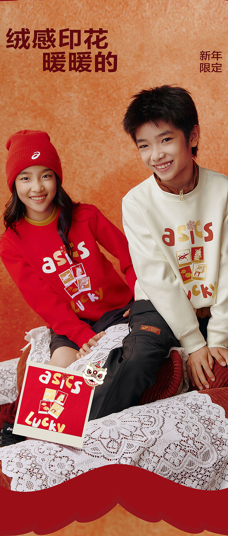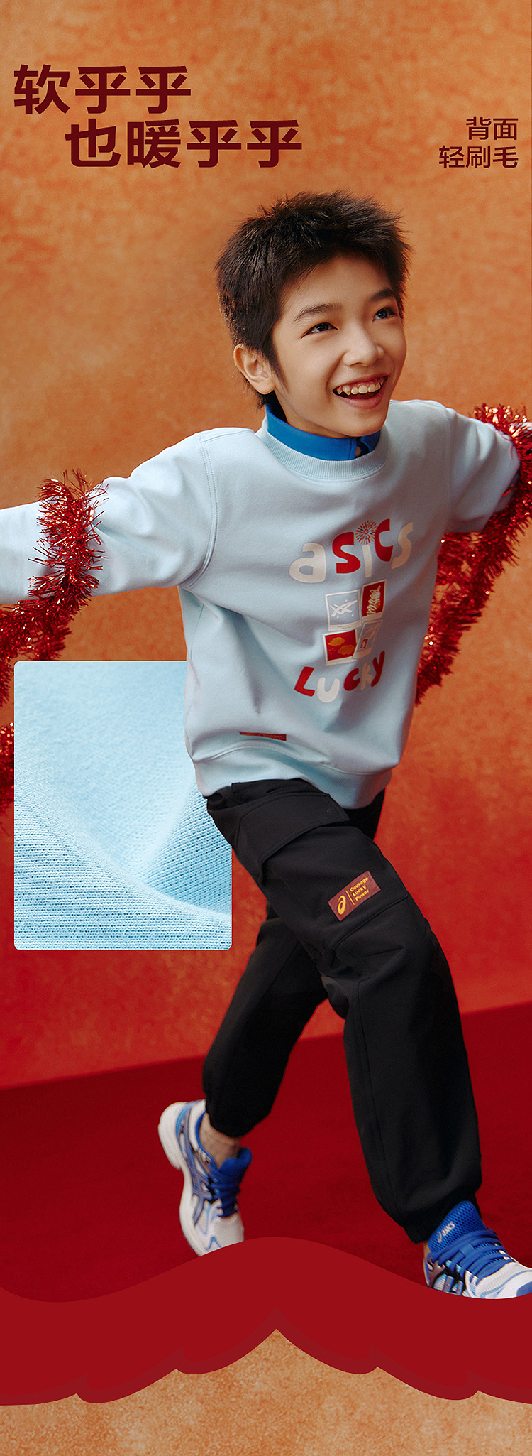 【商场同款】ASICS/亚瑟士儿童2026新年款圆领卫衣空气层舒适潮流