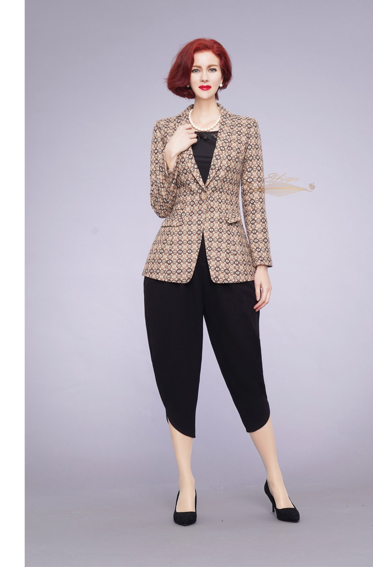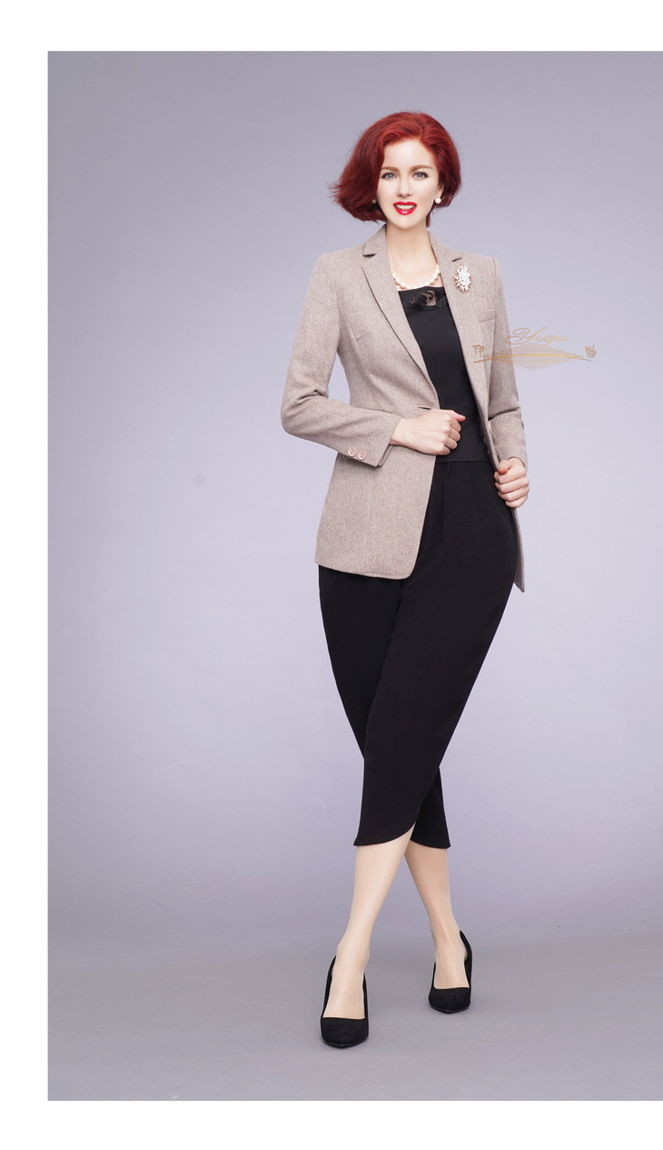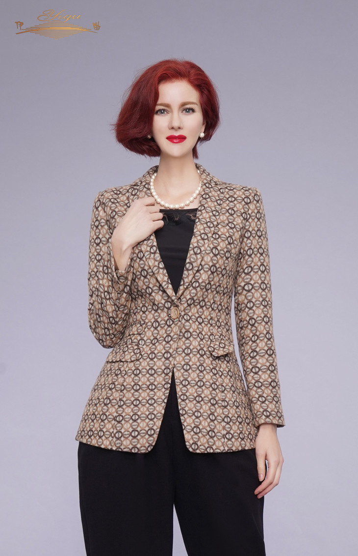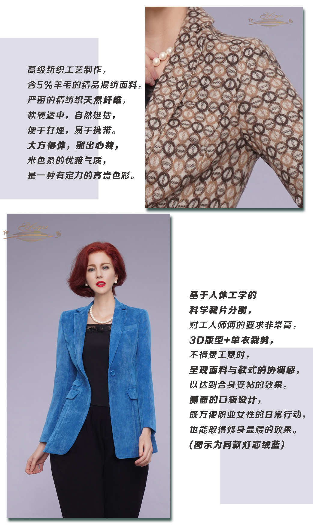 【特惠】YIQU丨“职场风彩”西装上衣(米色纹·含5%羊毛)P