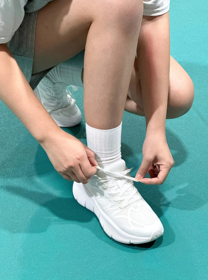 至于上脚效果,简约百搭的造型几乎可以胜任所有搭配。 脚感方面,简单轻盈是最大特点,弱化了整双鞋的存在感,营造舒适包裹 无论是慢跑、力量训练、静态拉伸、都不在话下。