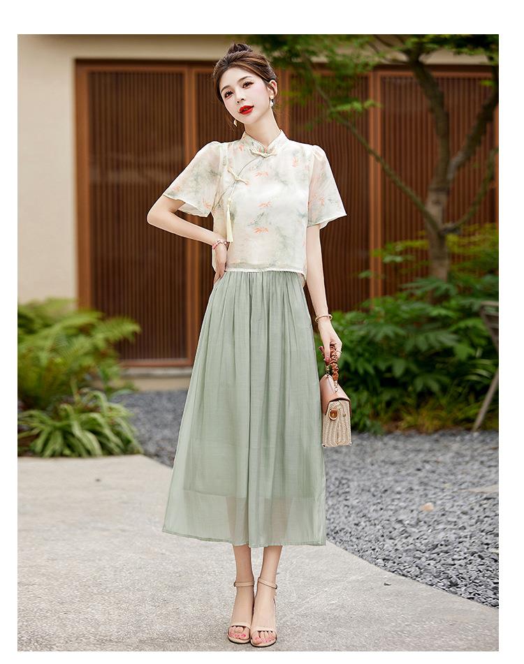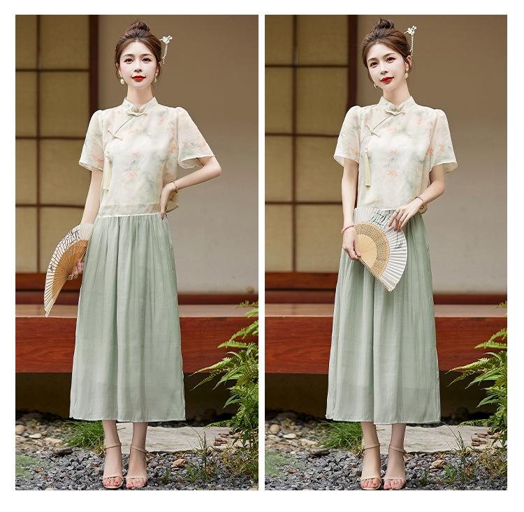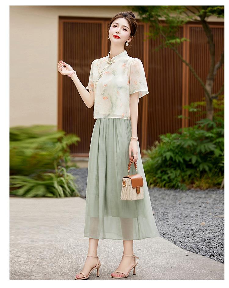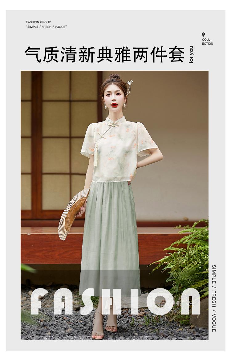 【预订·最迟6天发货】雪纺改良旗袍连衣裙女夏2024年新款复古盘扣新中式清新典雅两件套