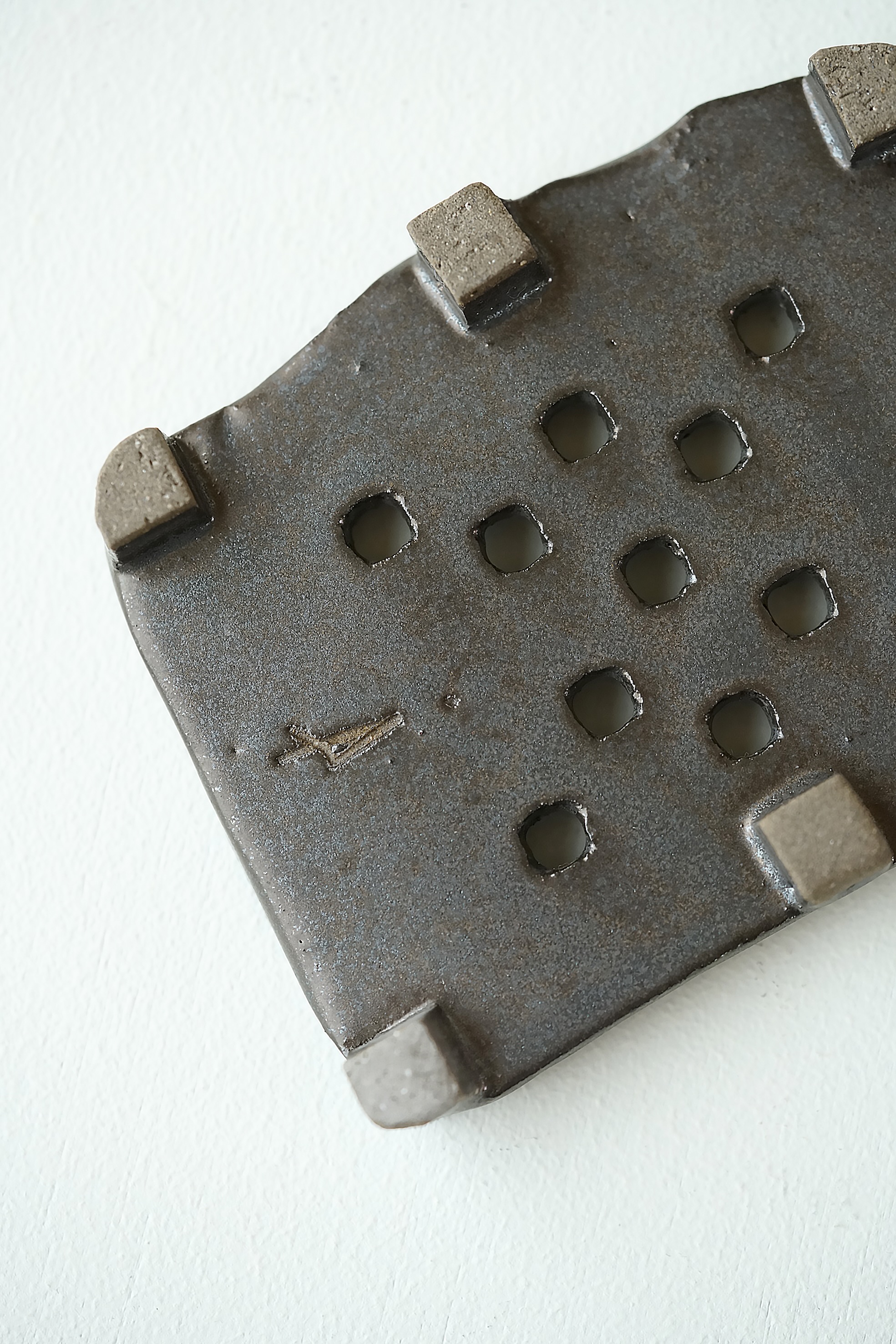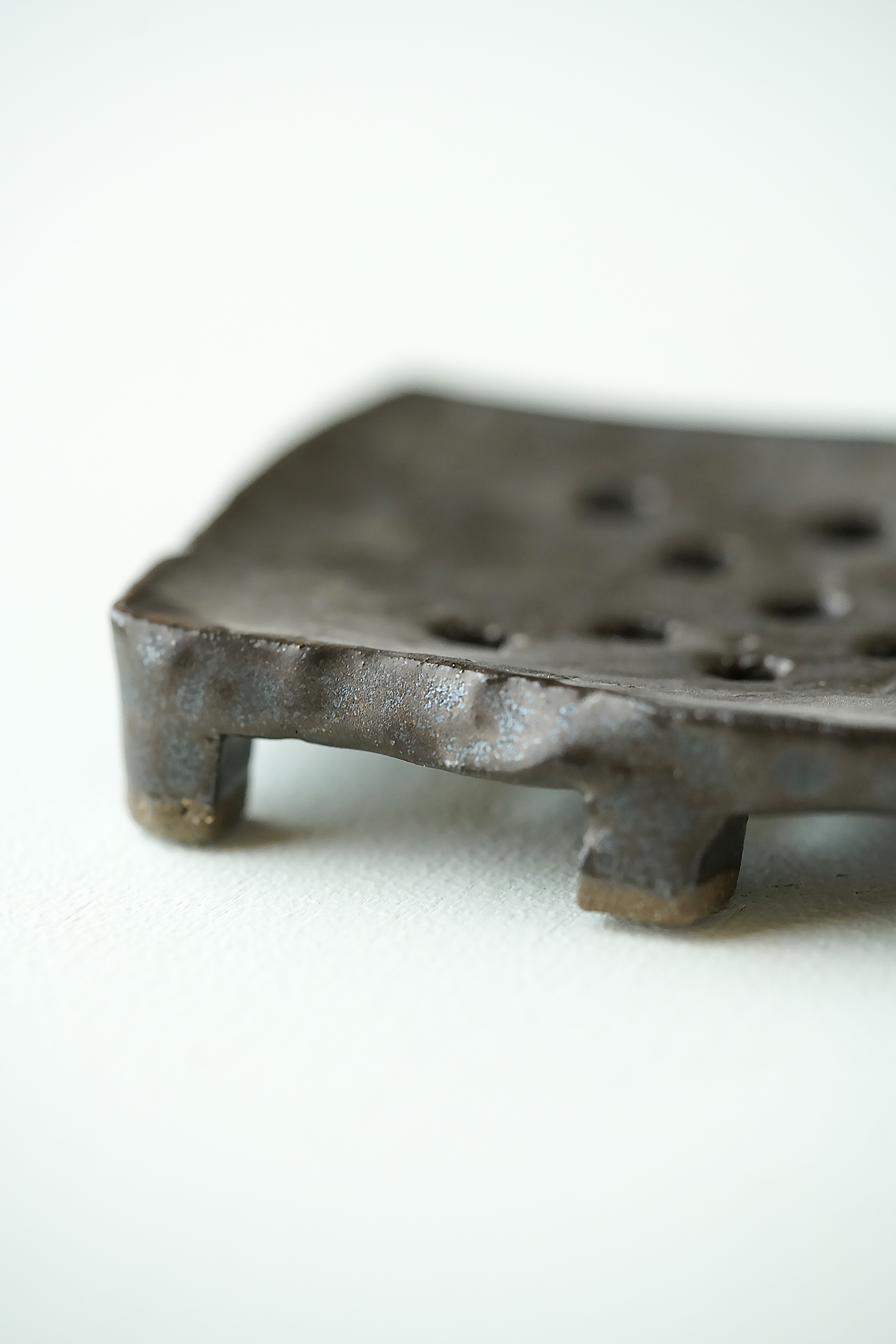 黒锖釉小型脚付茶盘
