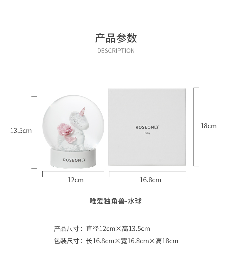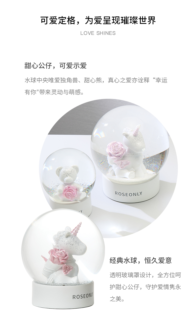 【水球摆件】ROSEONLY诺誓 玫瑰居家 玫瑰饰品 水球 独角兽水球 送朋友 送闺蜜