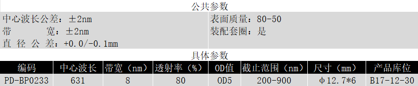 BP631/08K OD5@200-900 T>80% Φ12.7*6 带通滤光片 (带套圈)