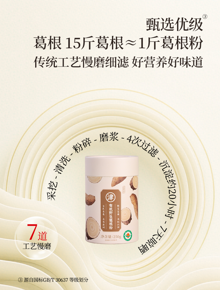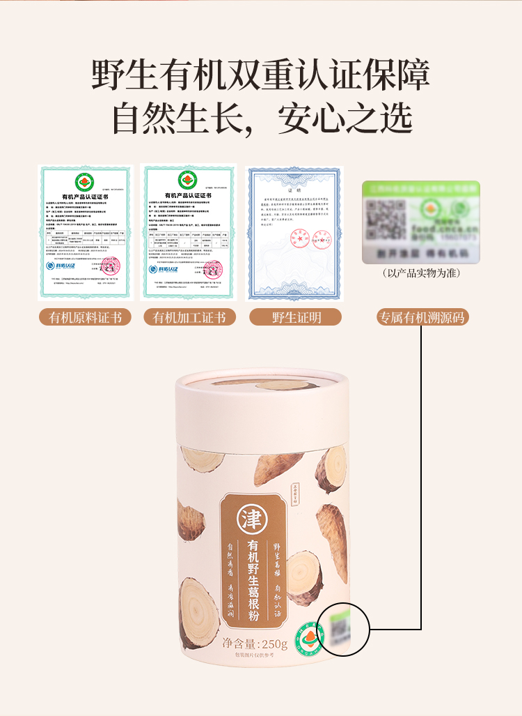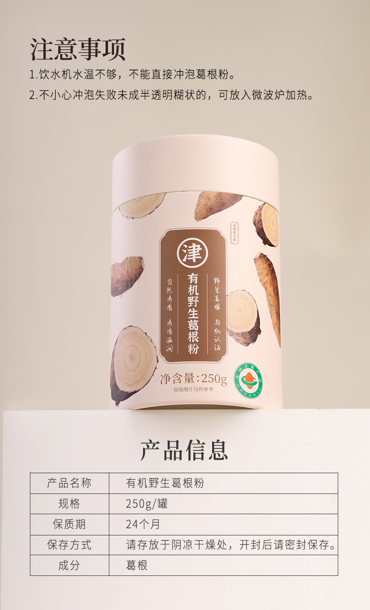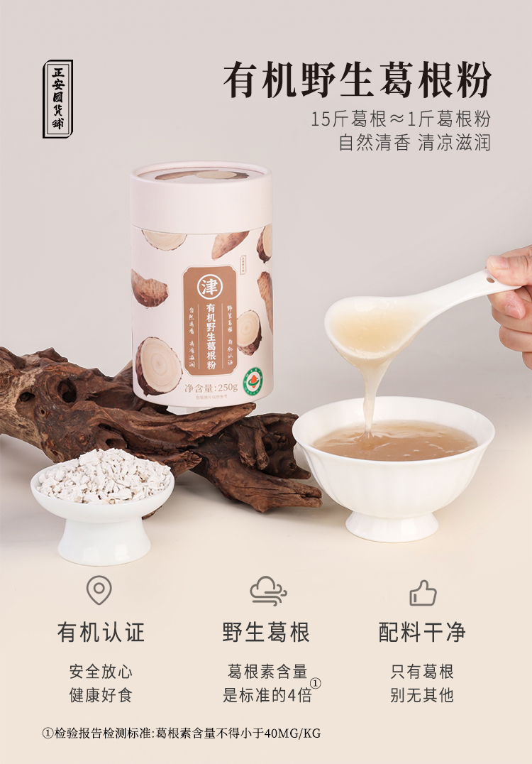 正安 有机野生葛根粉 7道工艺慢磨细滤 自然清香 清凉滋润 250g/罐