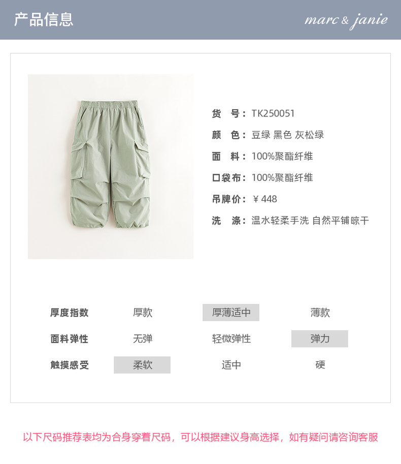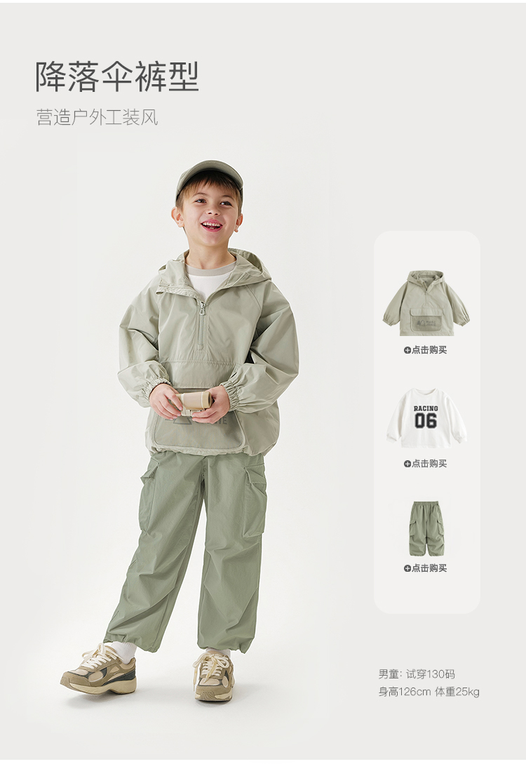 马克珍妮男童山系户外速干降落伞裤儿童运动裤2025春装新款250051