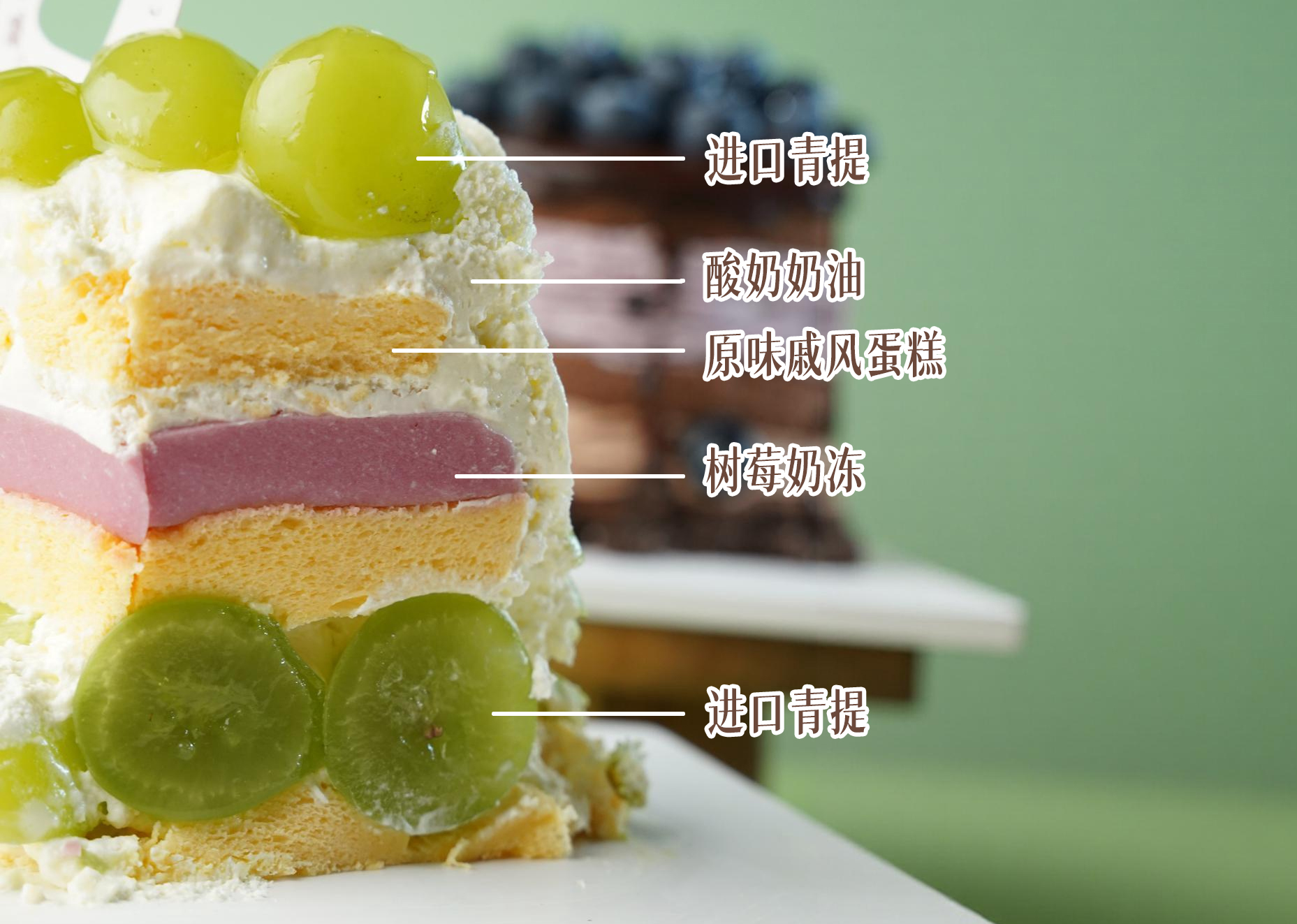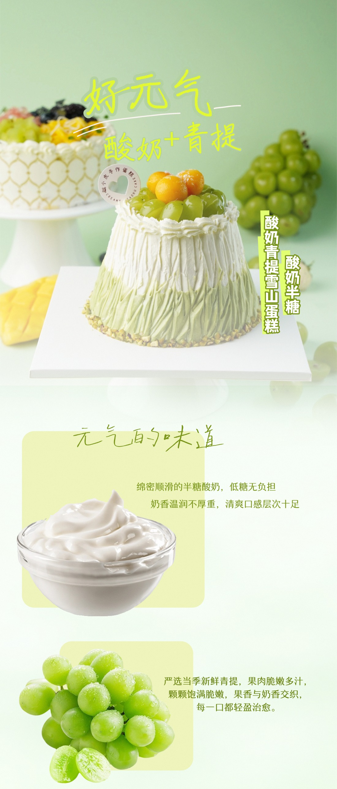 酸奶青提雪山蛋糕(酸奶半糖)