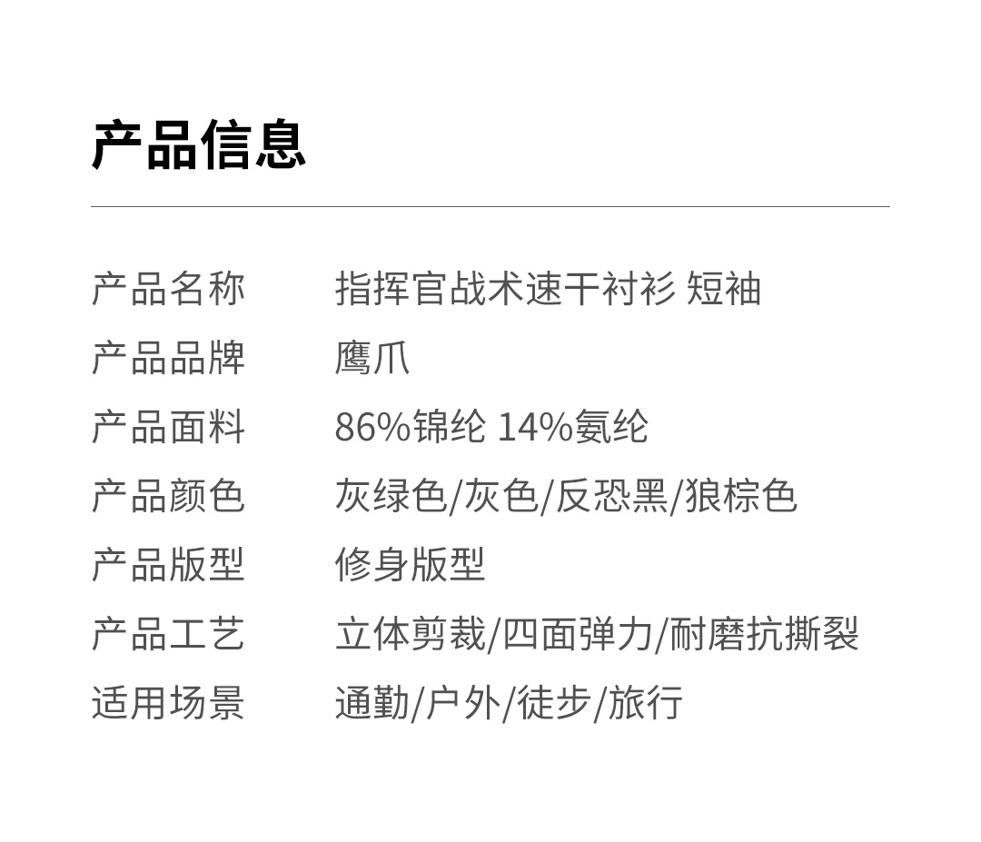 鹰爪,中国功能男装创领品牌,致力于服务中国3亿新中产阶级,着力打造全场景穿着体验创新平台,三十年产业深耕的积淀,以用户的痛点为己任,开创兼具军品与户外装备的功能动态穿着系统。