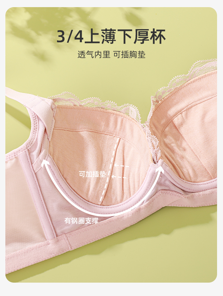 熳洁儿 小胸显大聚拢内衣云感棉不空杯收副乳防下垂蕾丝21761513
