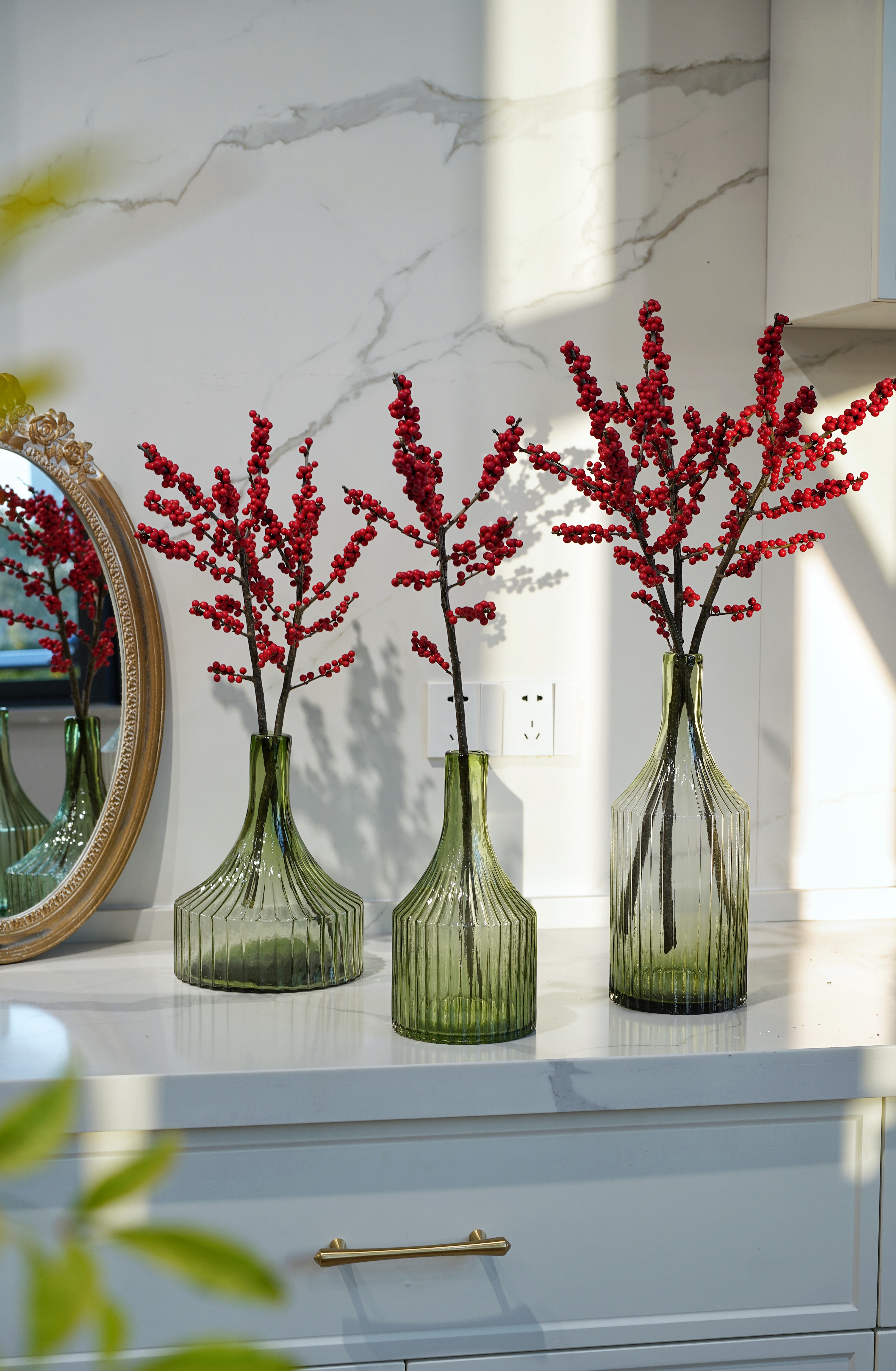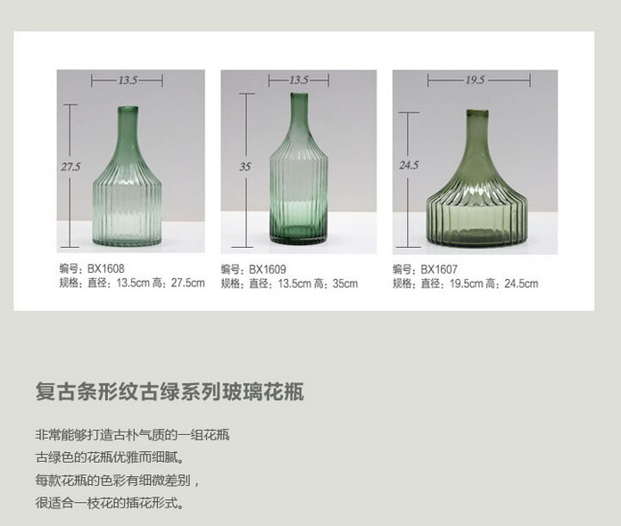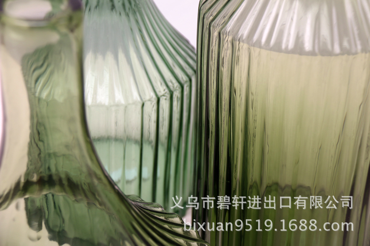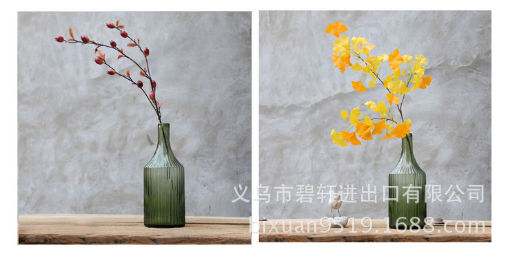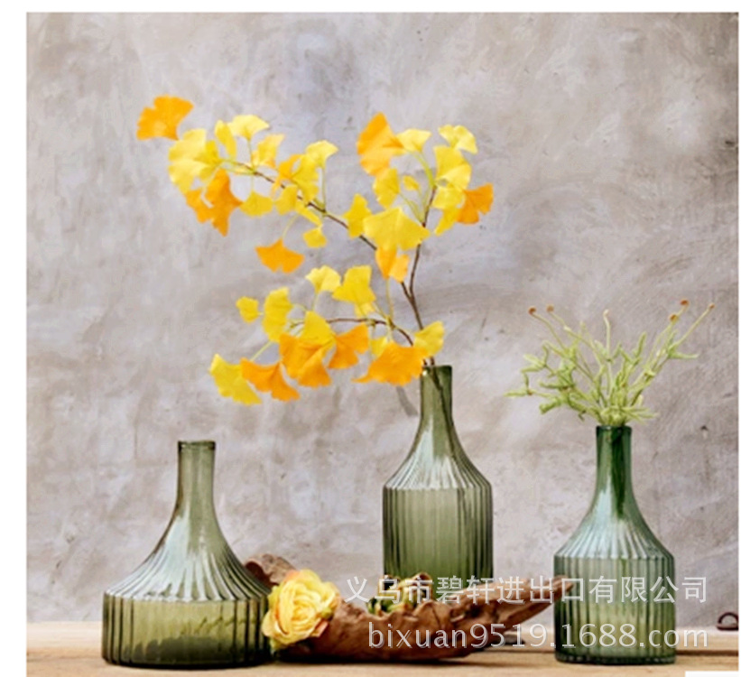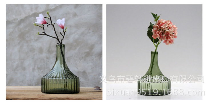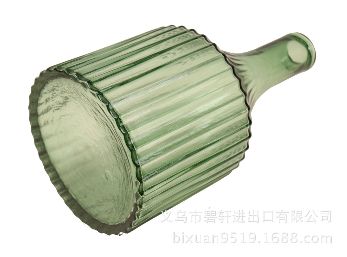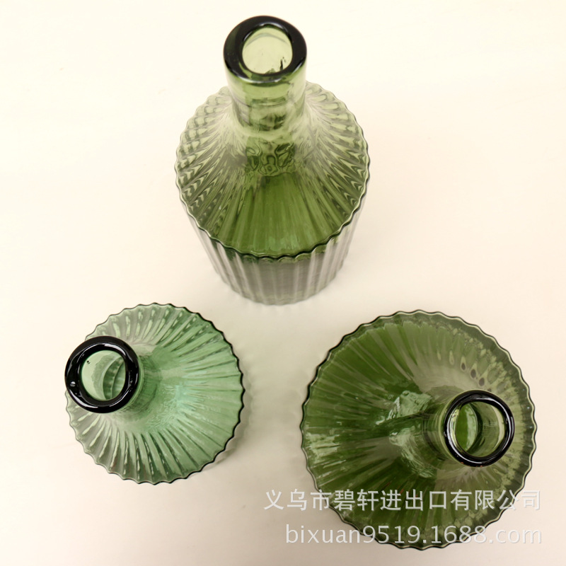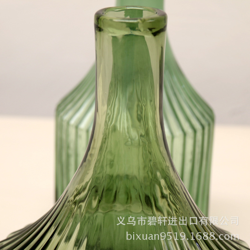 冬青碧轩复古条纹状简约古绿色窄口文艺清新台面玻璃花瓶摆件美式工业饰品