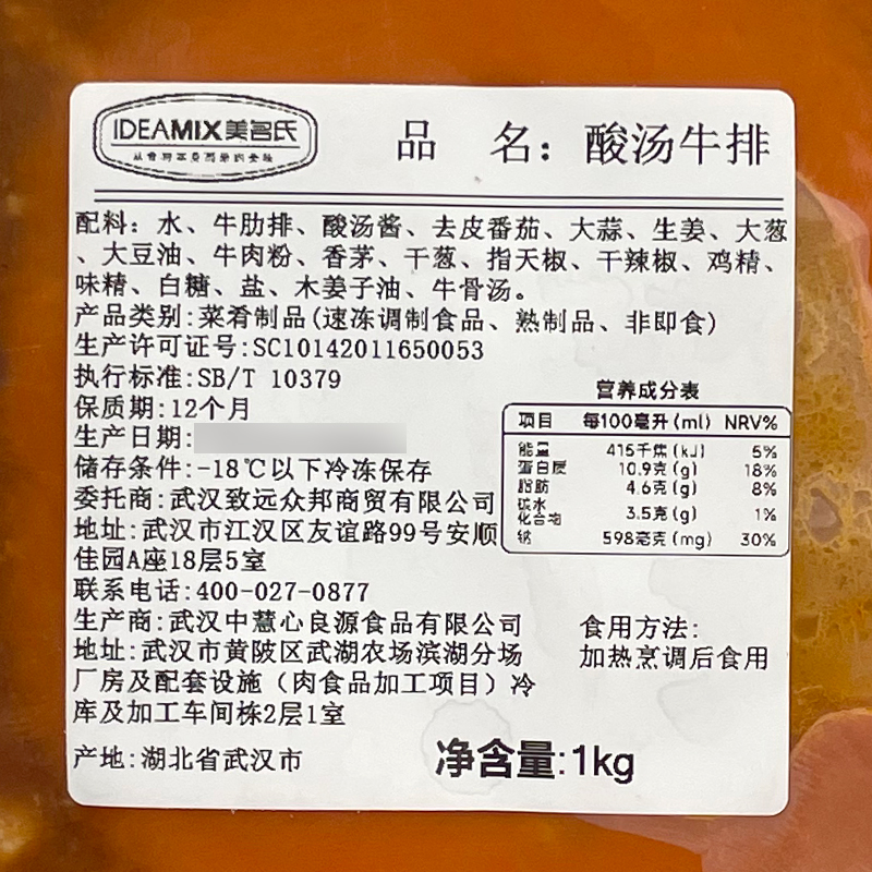 美名氏酸汤牛排1kg 商用冷冻云贵酸汤锅半成品原料融合菜
