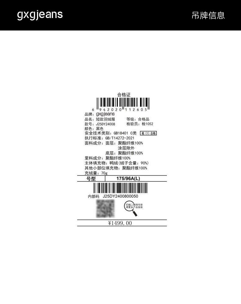 gxg.jeans男装 多色不规则设计轻薄衬衫式羽绒服外套 25年冬热卖