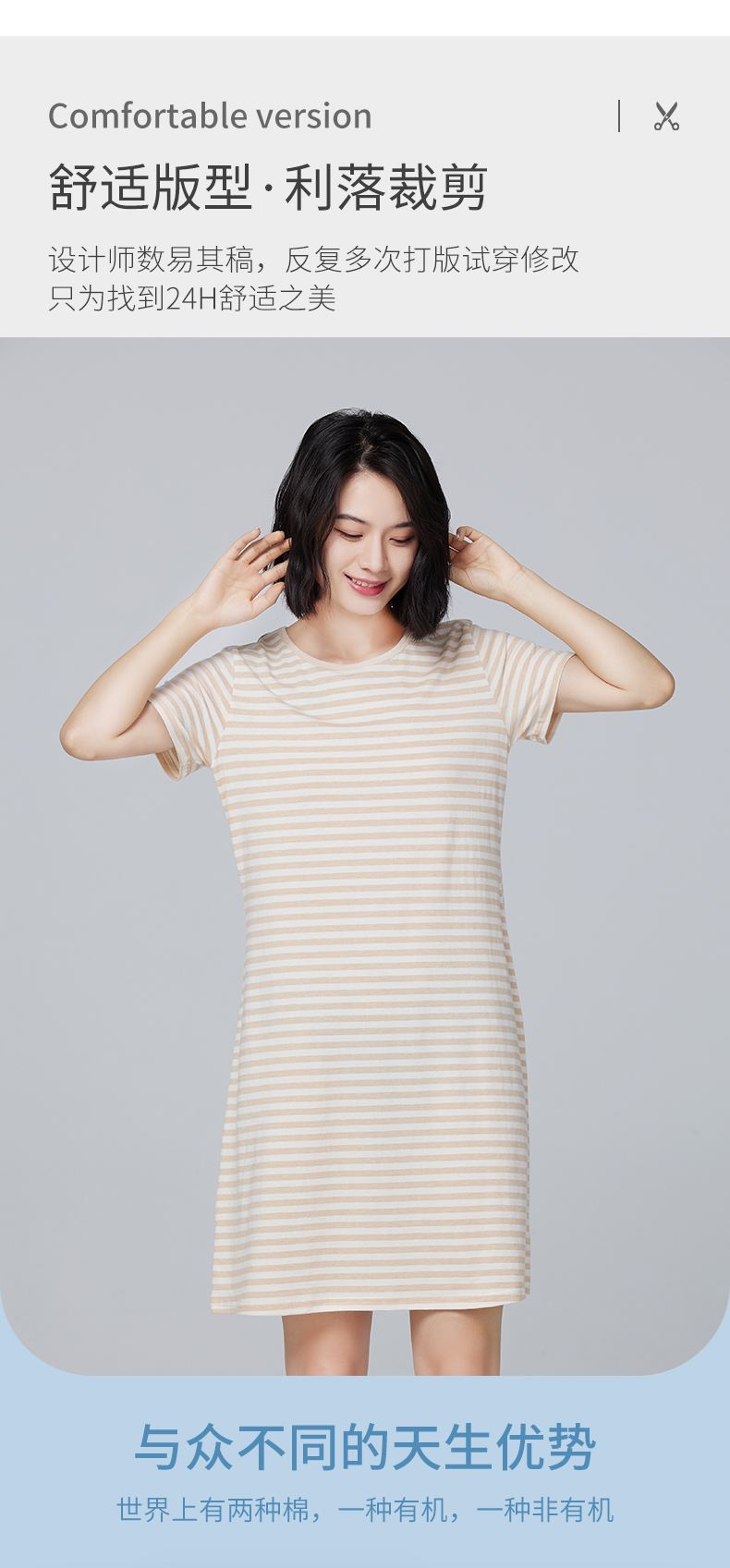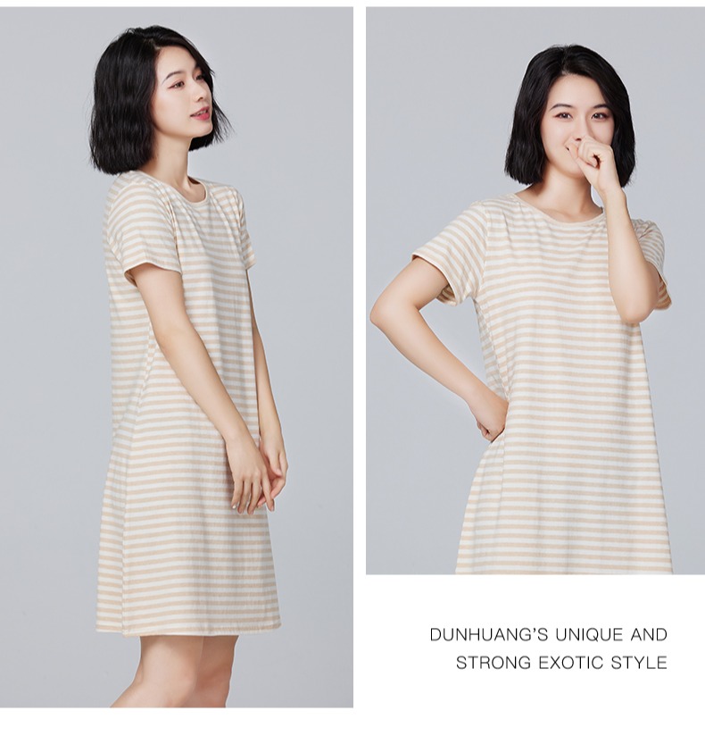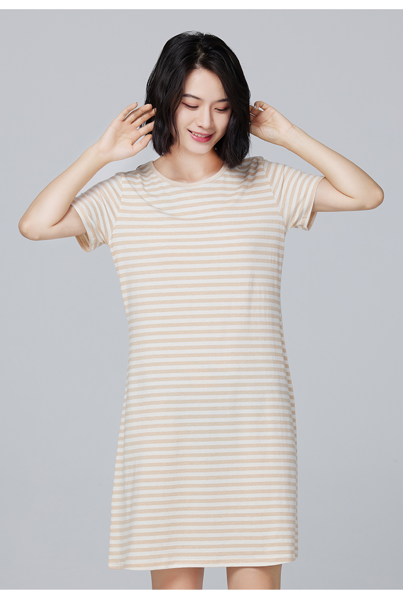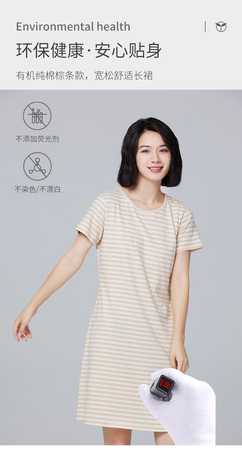素道有机纯棉家居裙 新款宽松舒适睡裙 大码短袖长裙