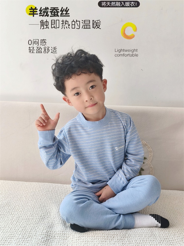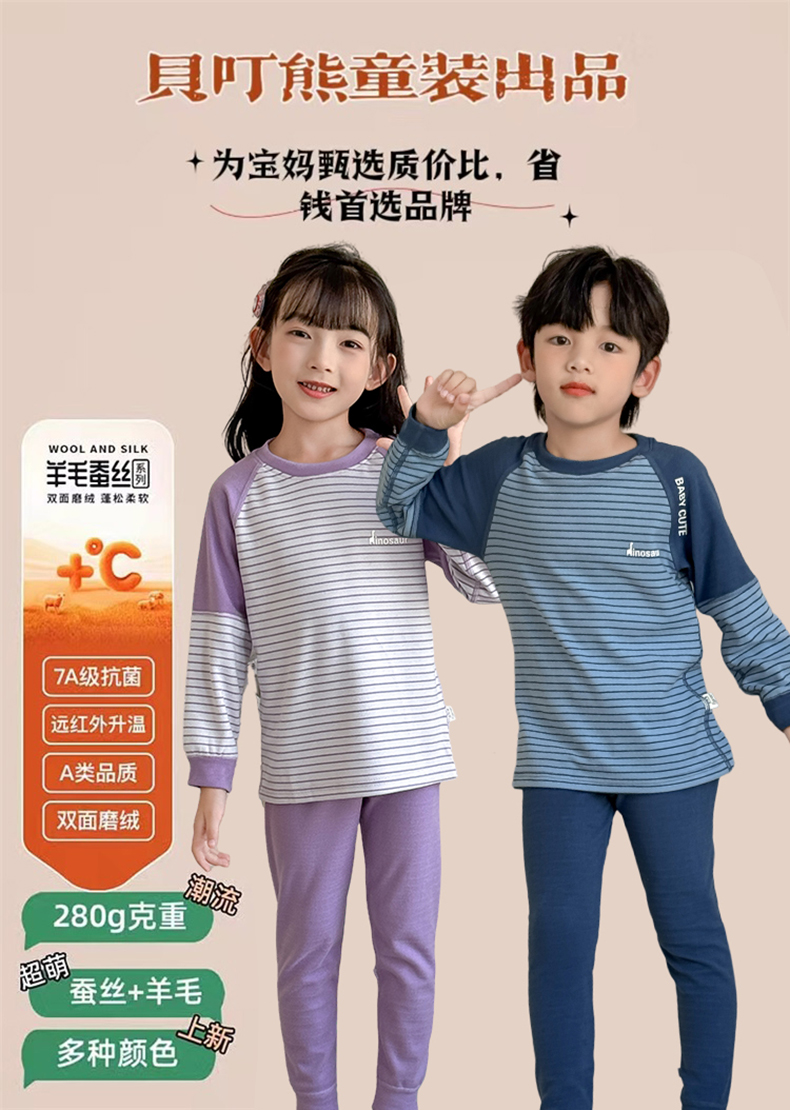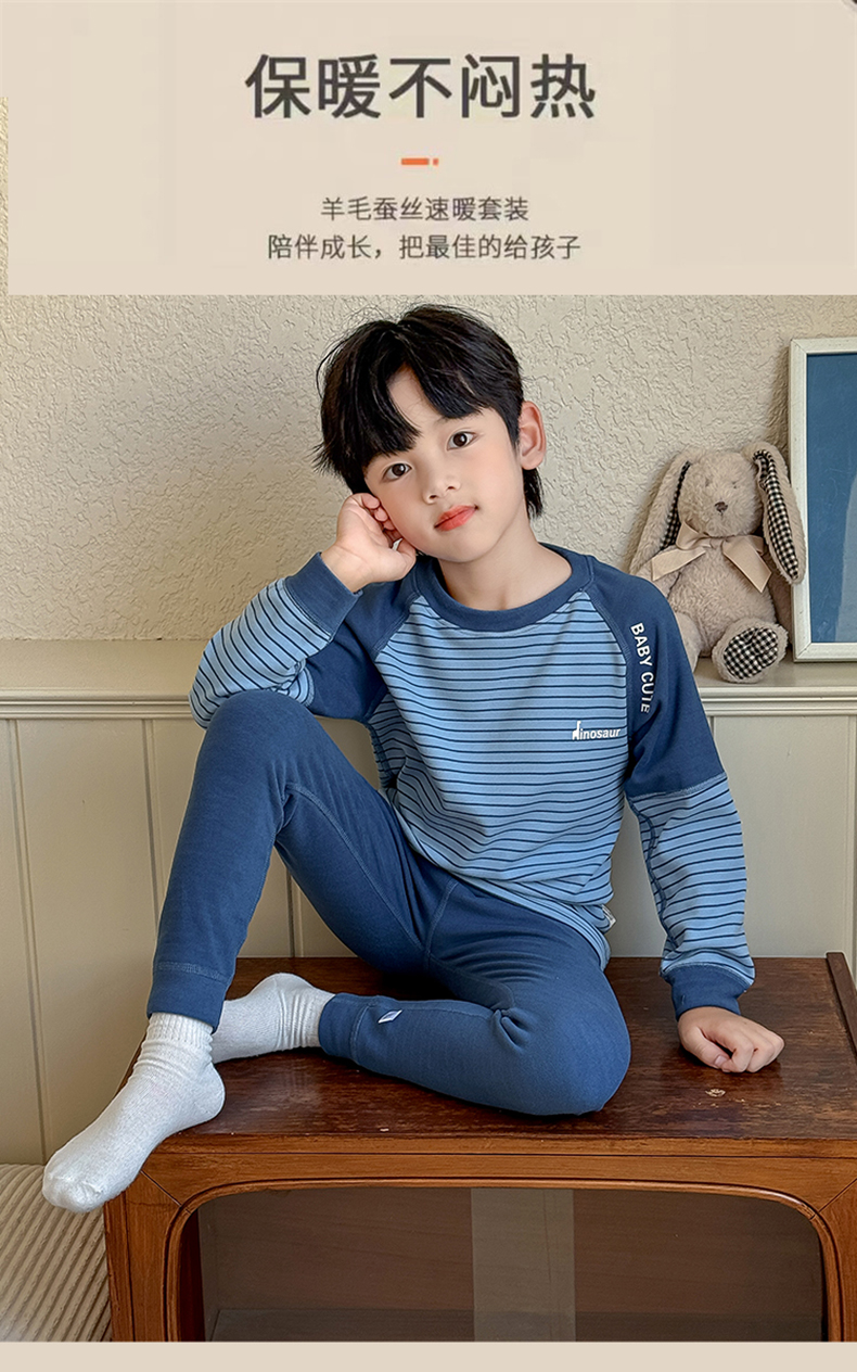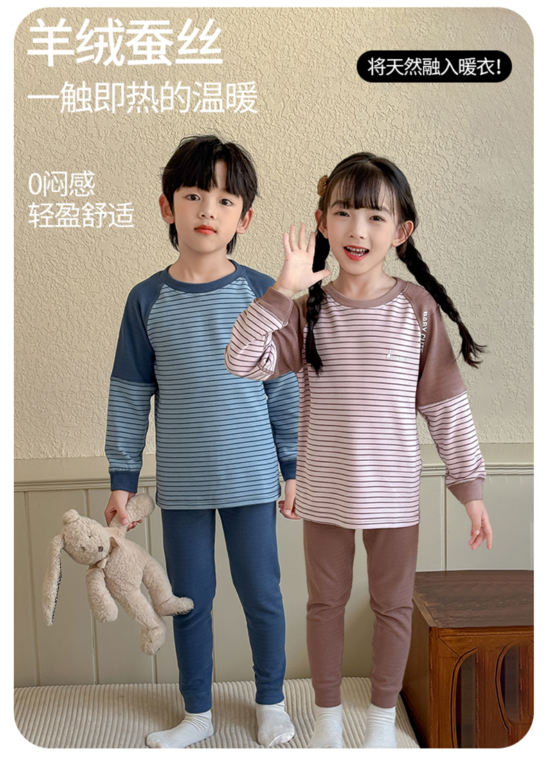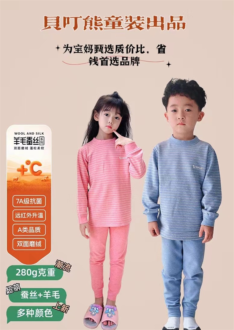 【加入购物车2套支付59.9元】贝叮熊潮童羊毛蚕丝家居服套装【2510“羊毛”服装】