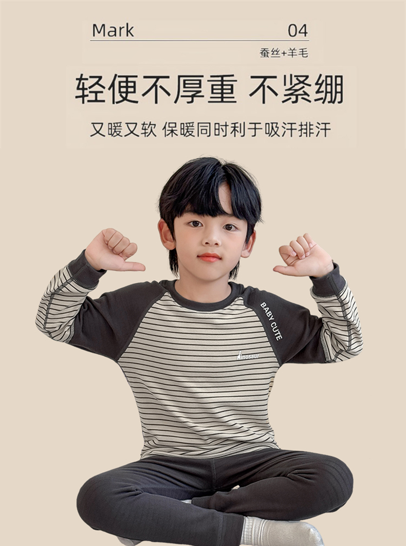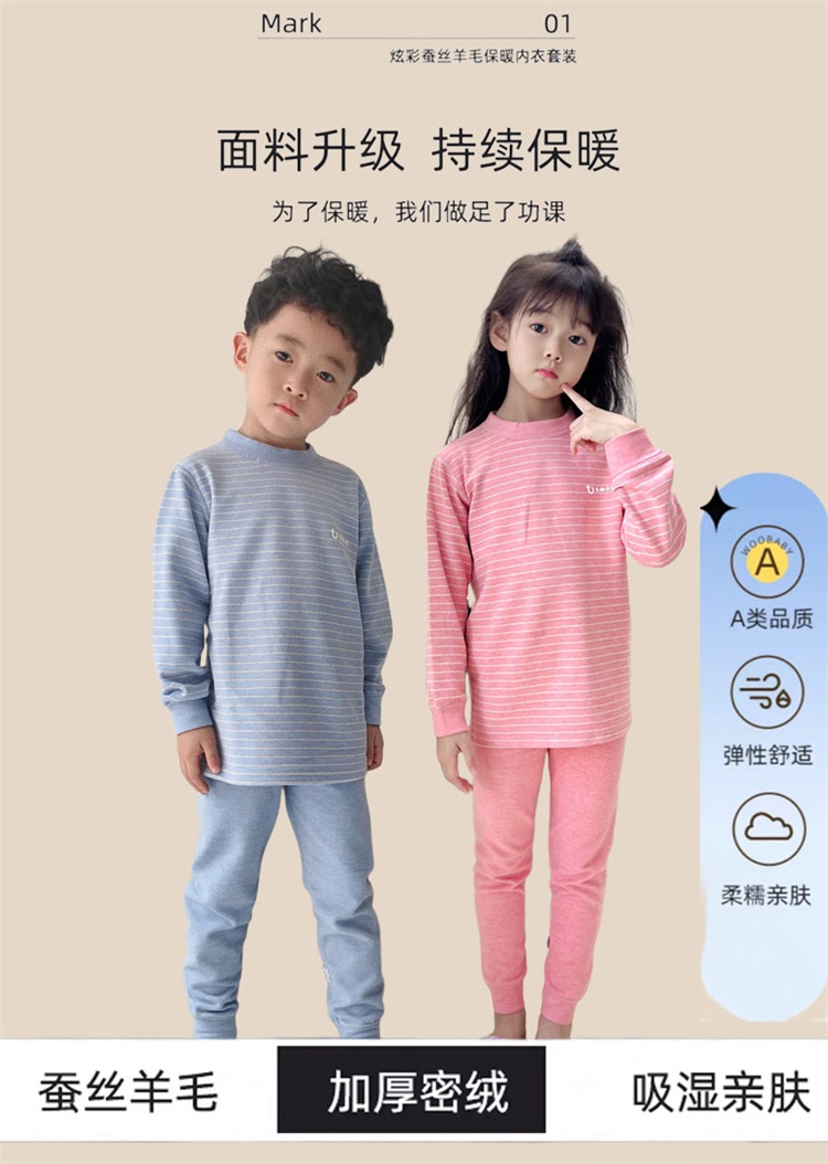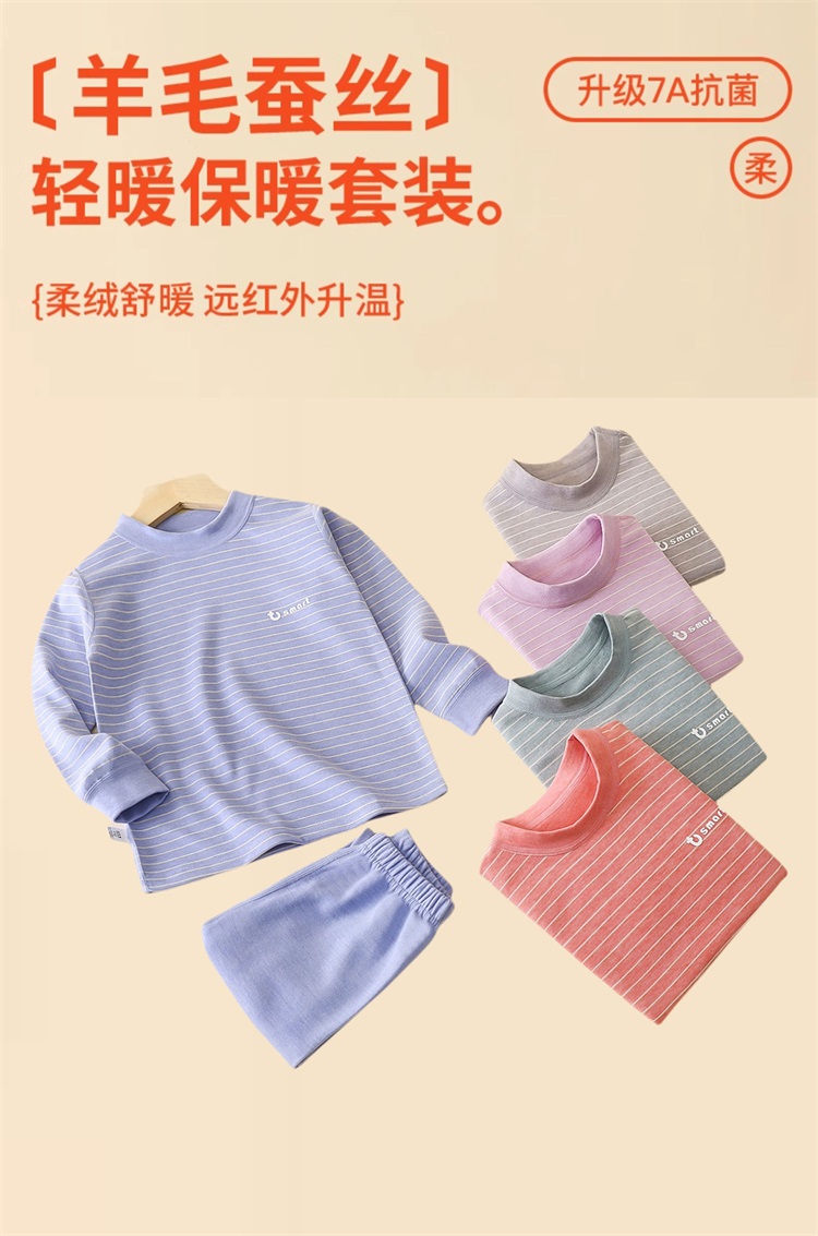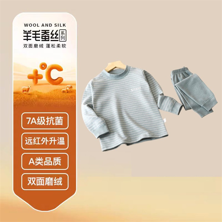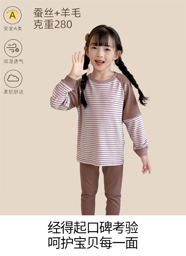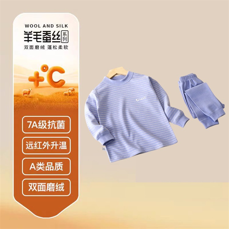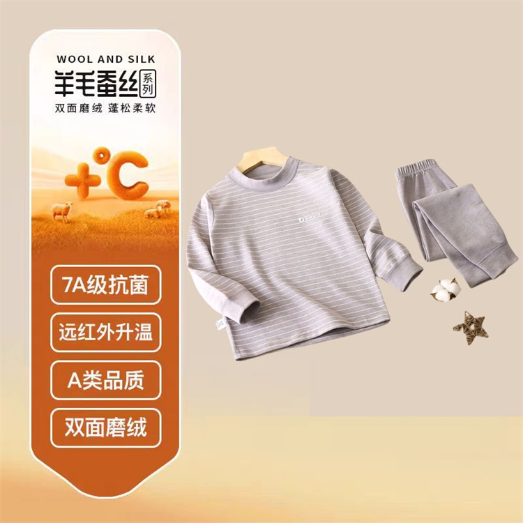 【加入购物车2套支付59.9元】贝叮熊潮童羊毛蚕丝家居服套装【2510“羊毛”服装】