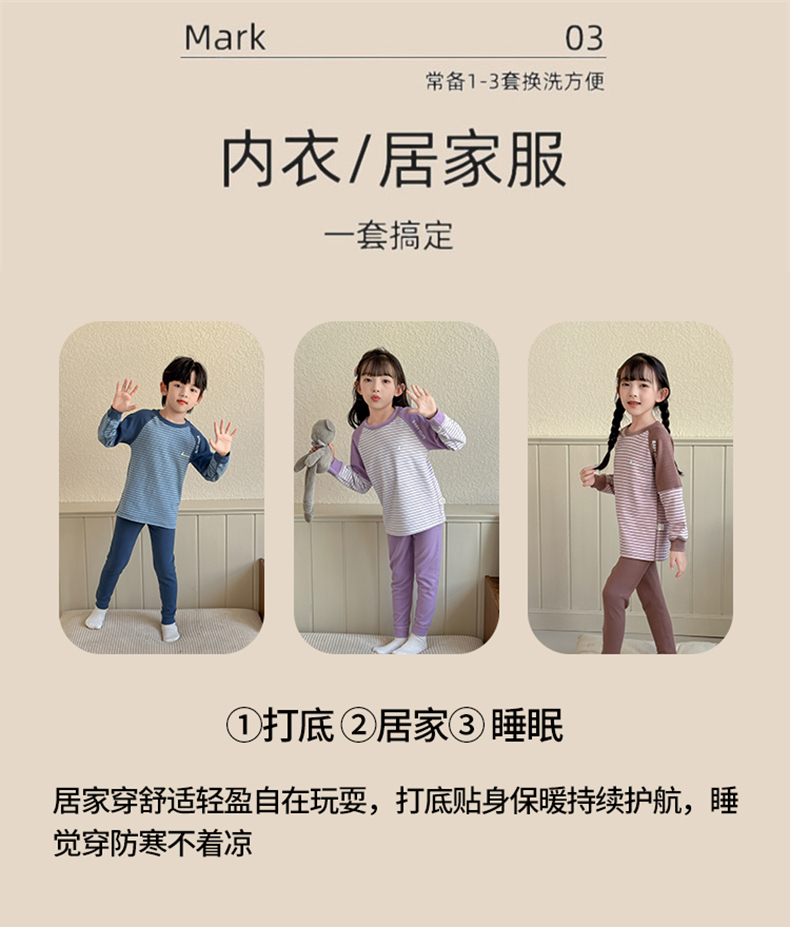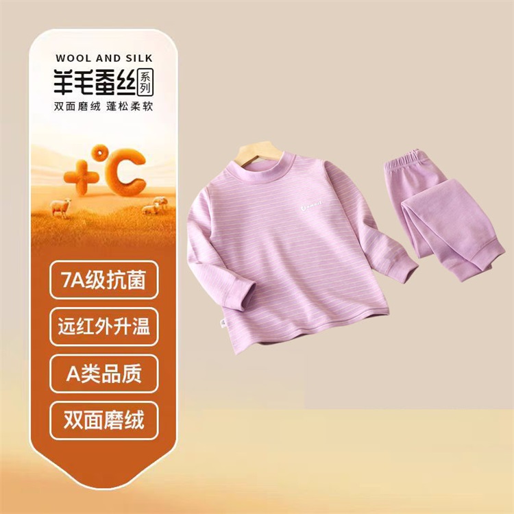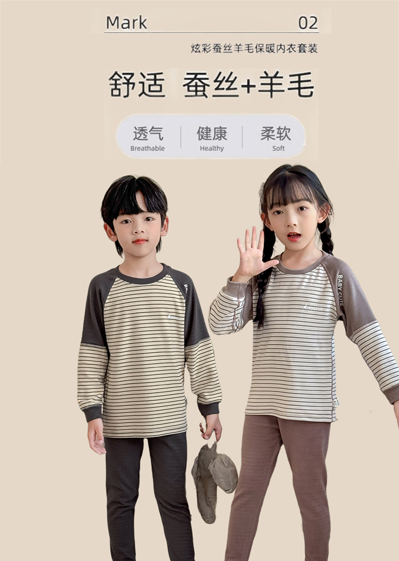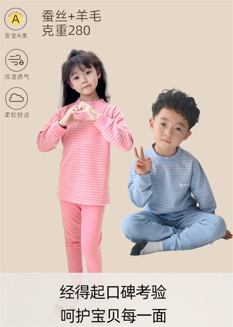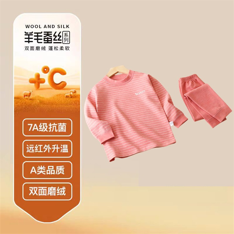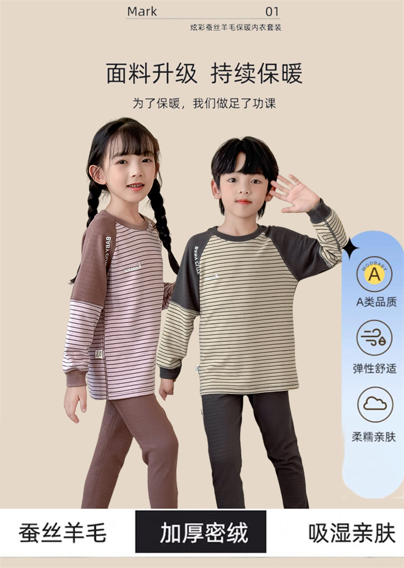【加入购物车2套支付59.9元】贝叮熊潮童羊毛蚕丝家居服套装【2510“羊毛”服装】