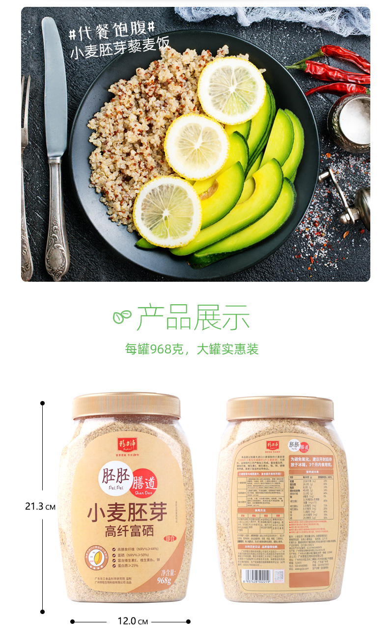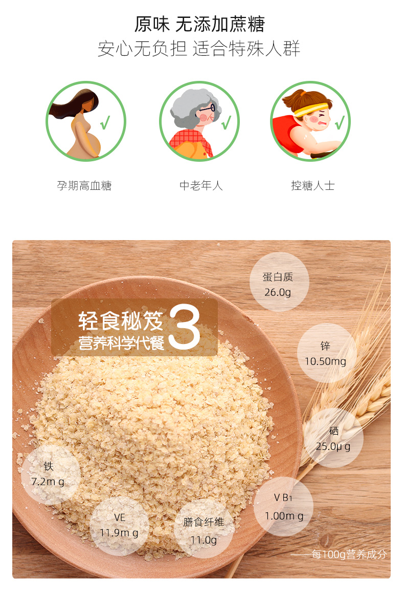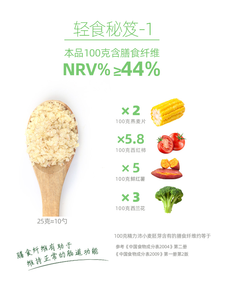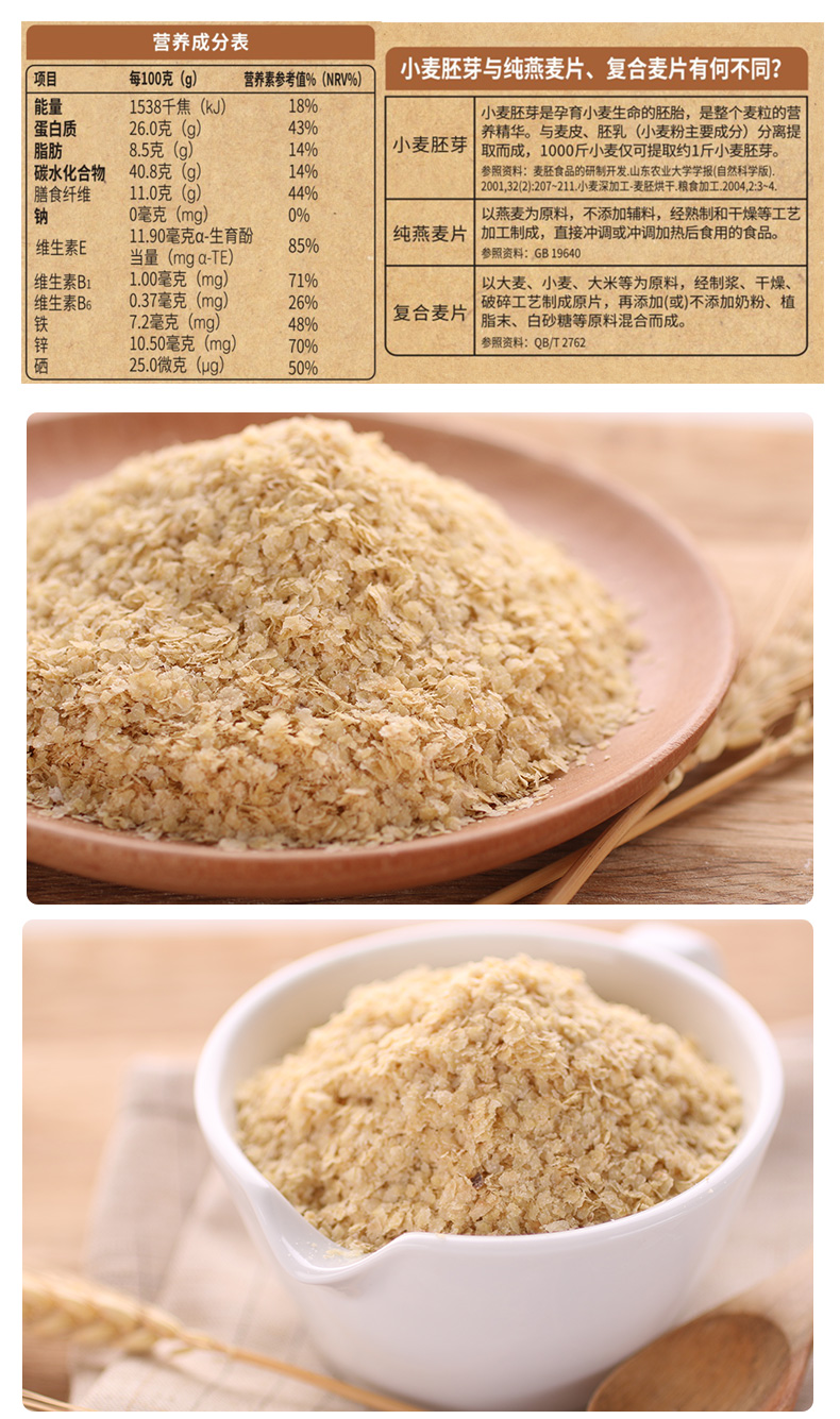 精力沛 早餐谷物 小麦胚芽高纤富硒 营养胚芽片即食无添加蔗糖冲饮中老年麦片代餐粉968g