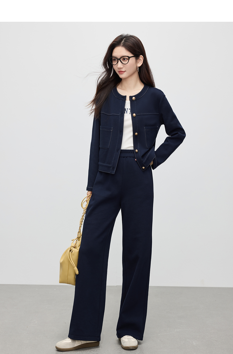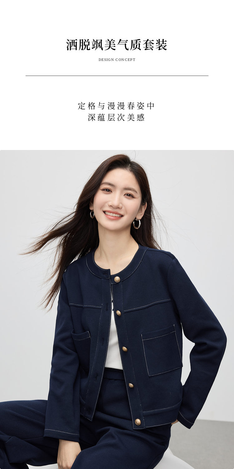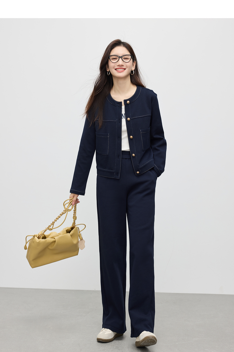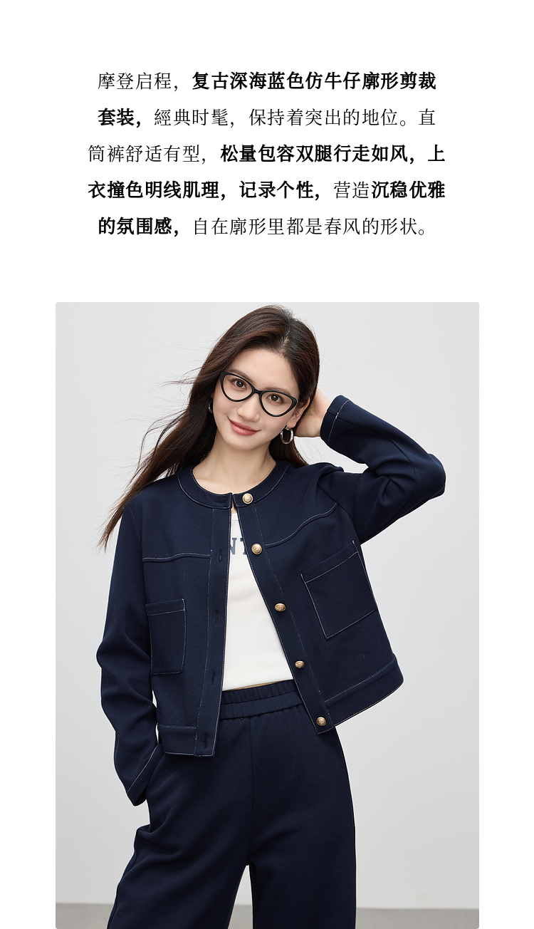 【年货节】熙世界休闲气质仿牛仔套装女2025春新款高级感短外套阔腿裤两件套