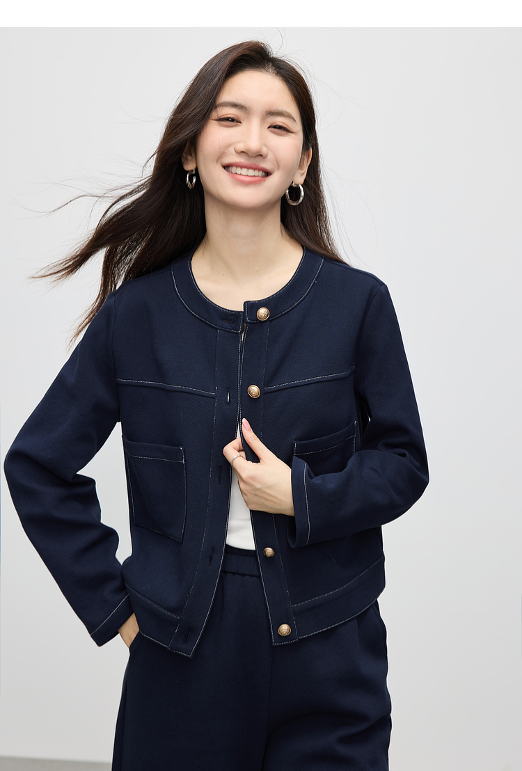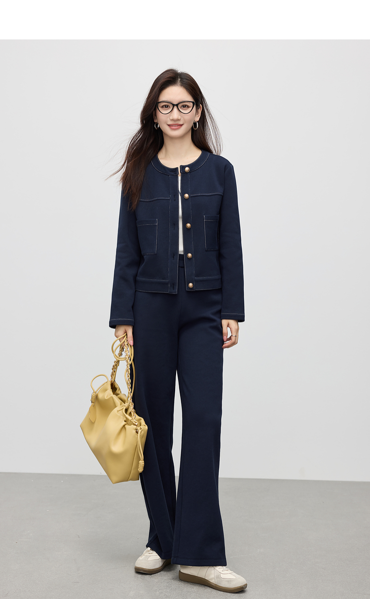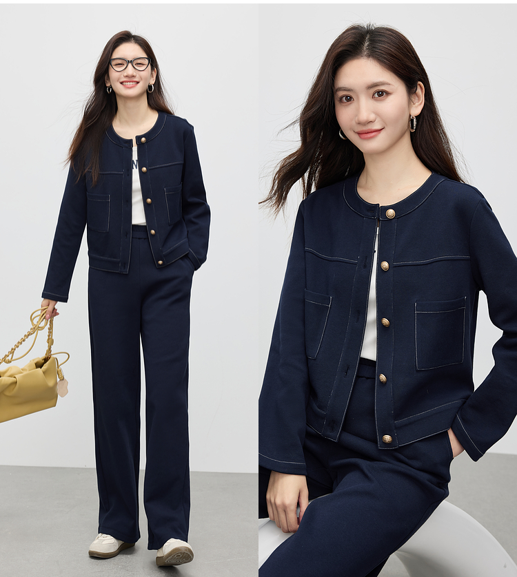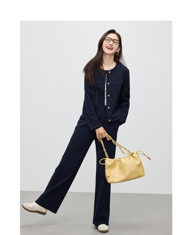 【年货节】熙世界休闲气质仿牛仔套装女2025春新款高级感短外套阔腿裤两件套