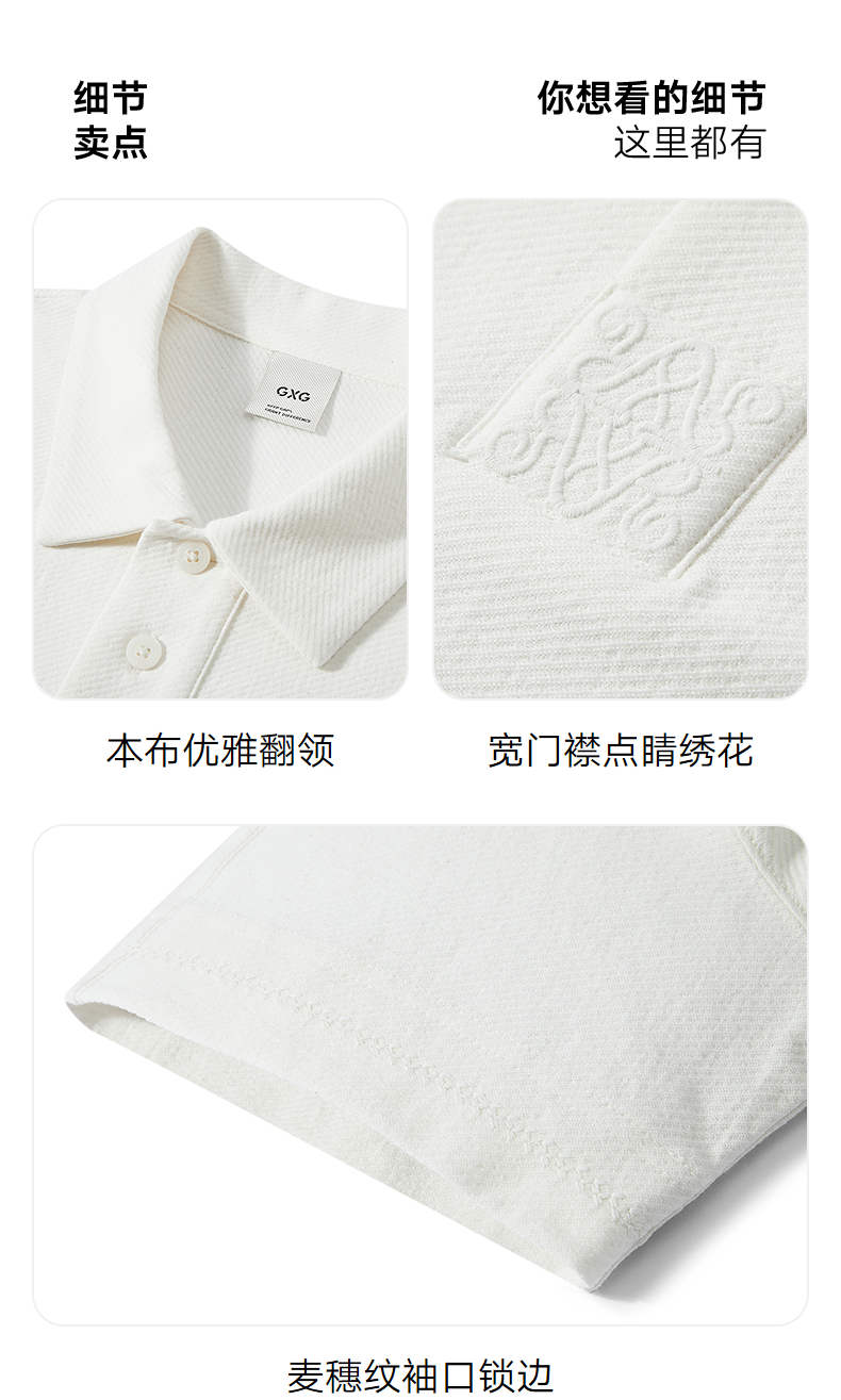 GXG男装 肌理斜纹绣花通勤polo衫男士上衣翻领短袖T恤 25夏热卖