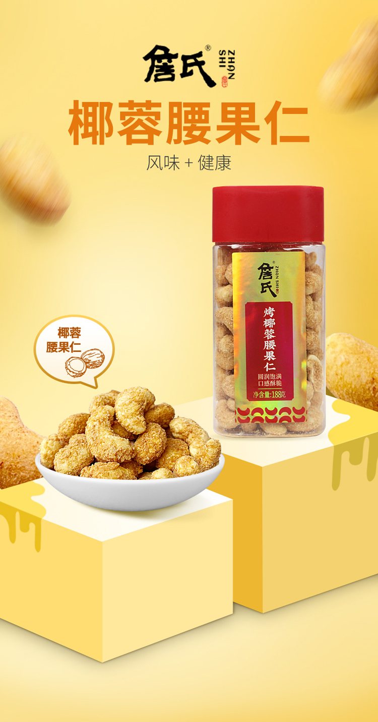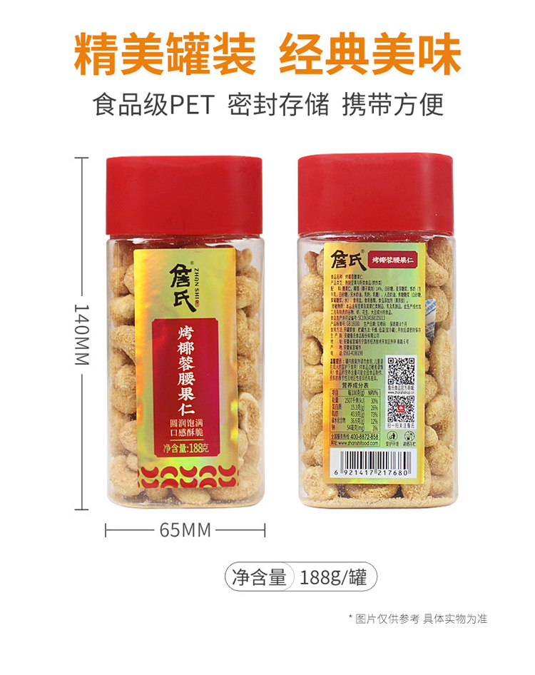 詹氏 小红罐椰蓉腰果仁188g*3罐 圆润饱满 口感酥脆 48小时发货