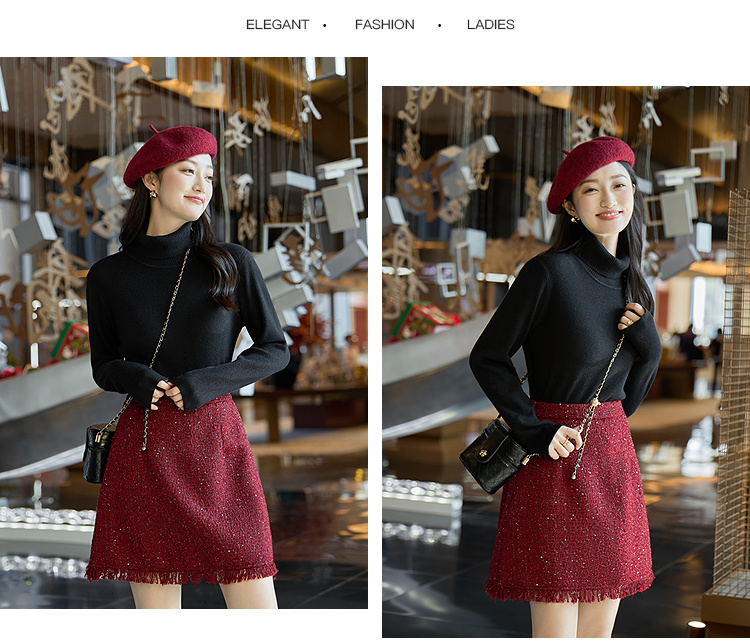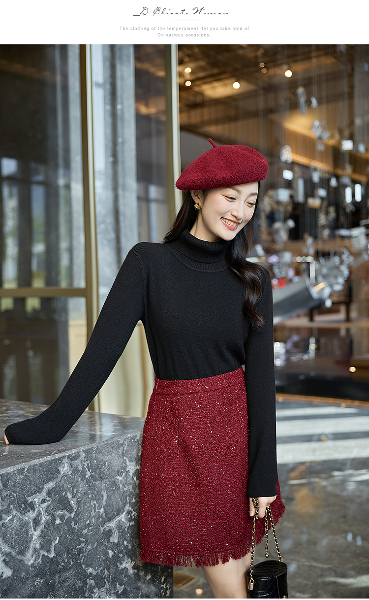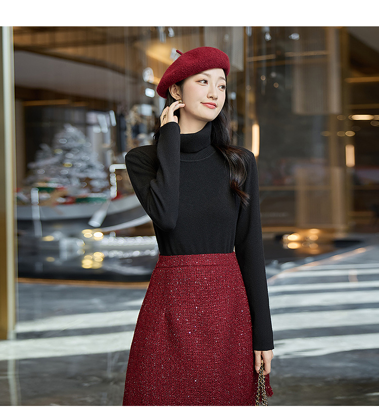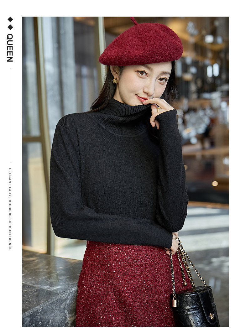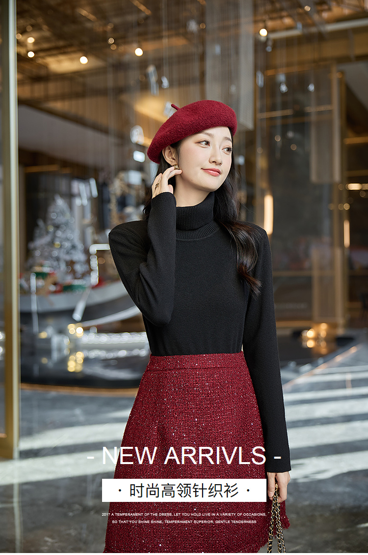 奢姿大码女装2025冬季胖妹妹时尚高领针织打底衫气质简约显瘦内搭9854691181