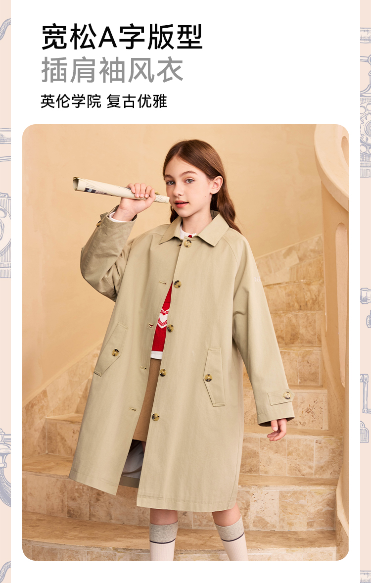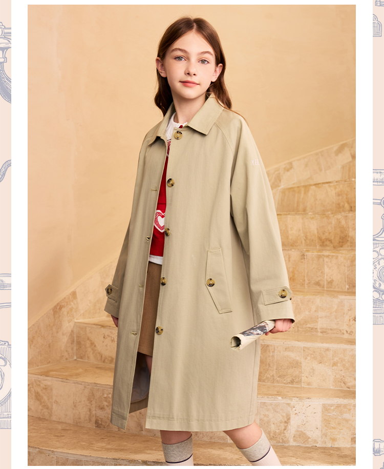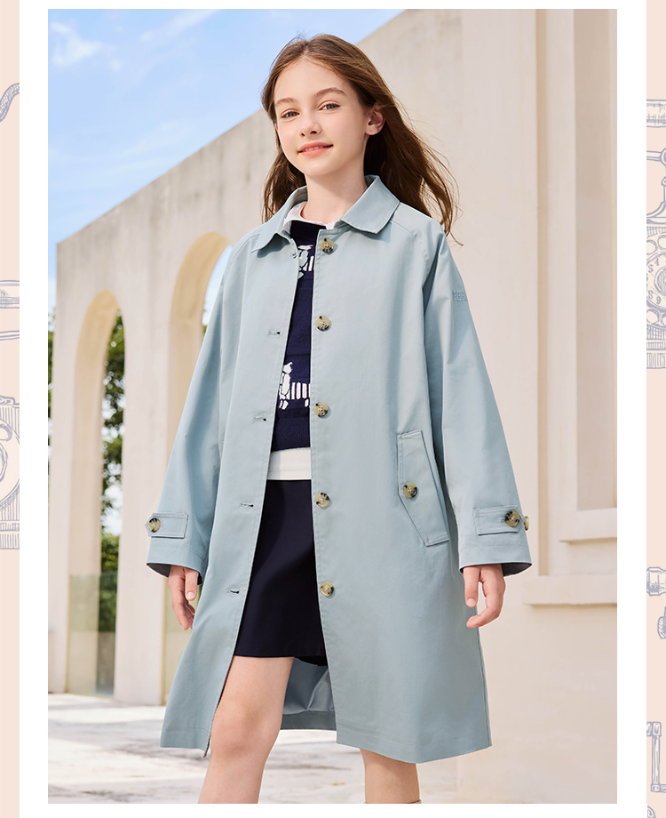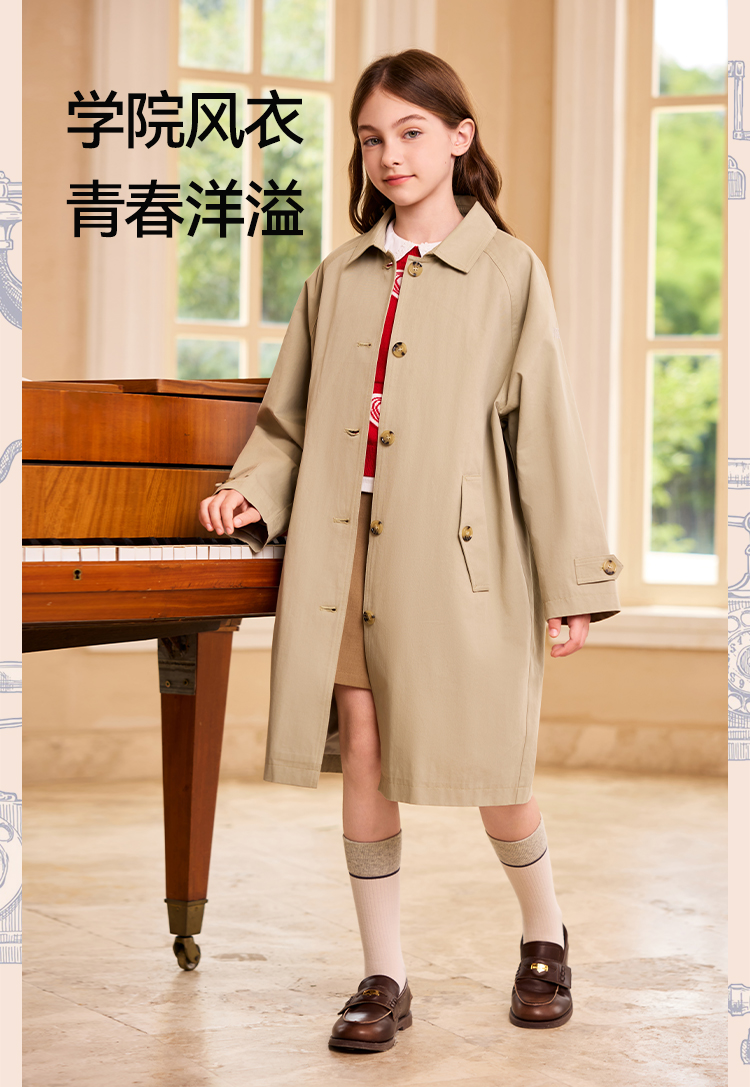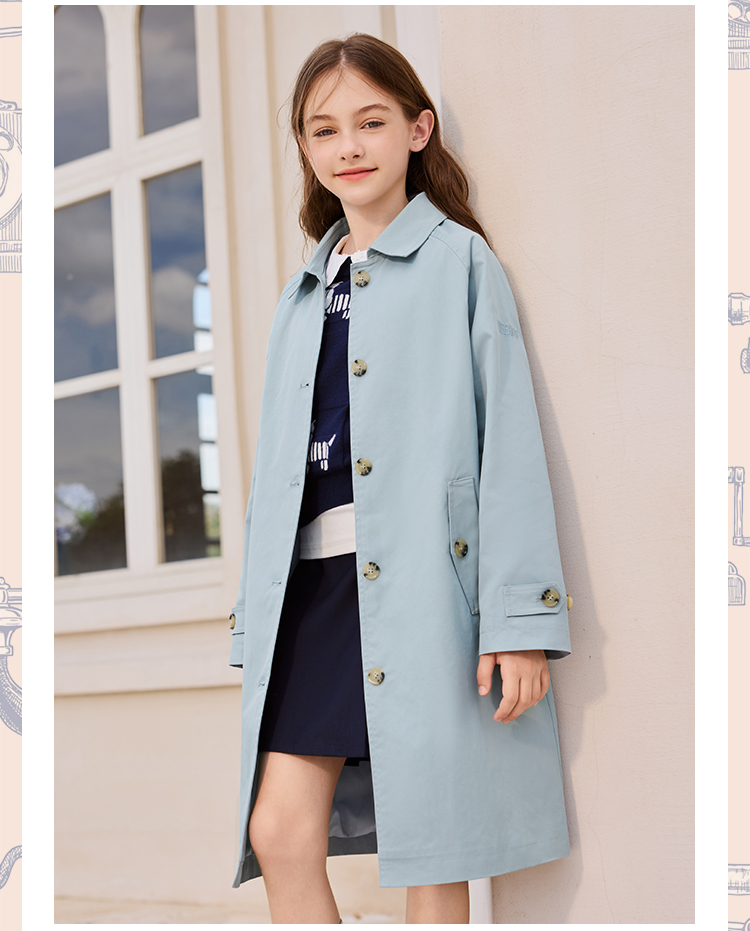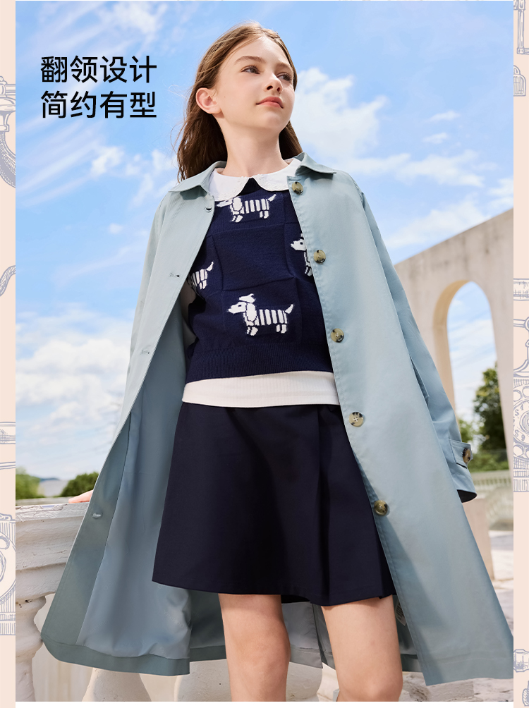 【英氏】【140-170】女童春秋中长款风衣外套