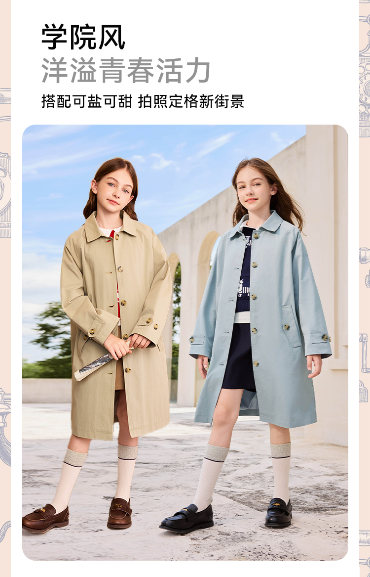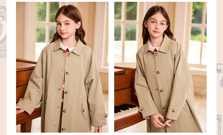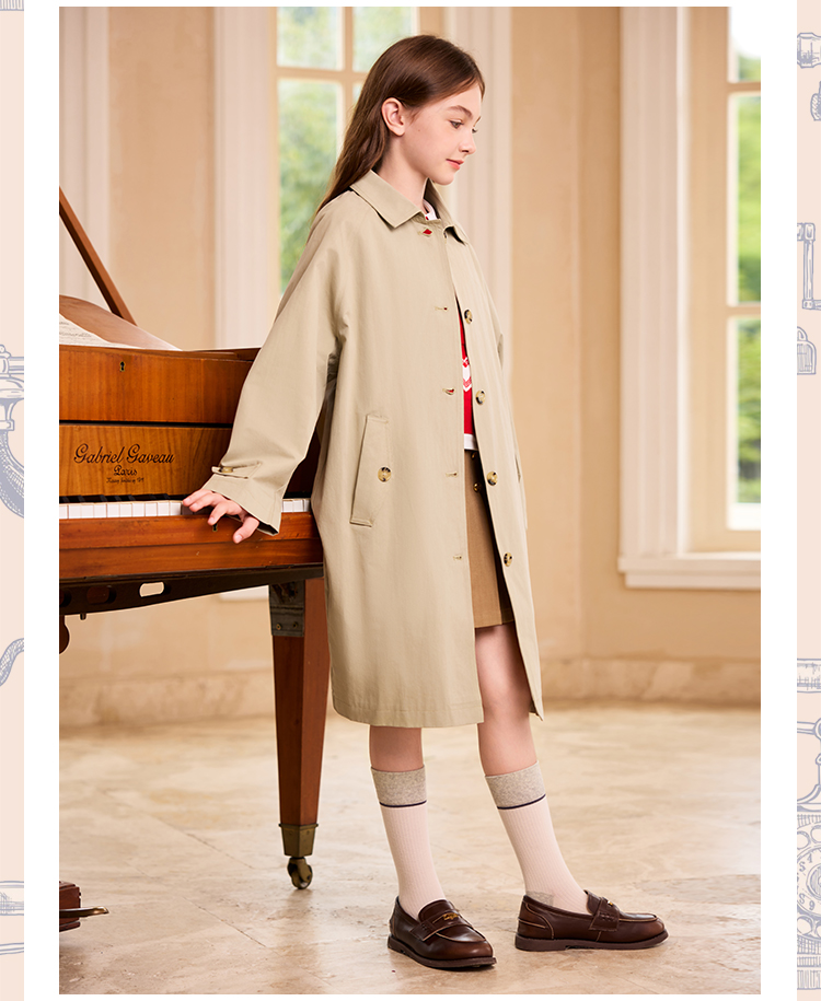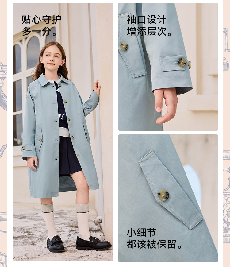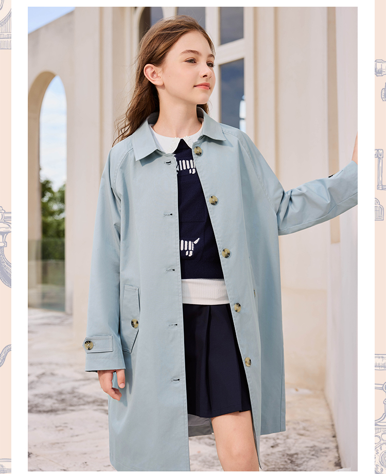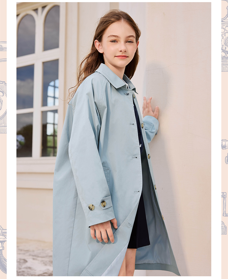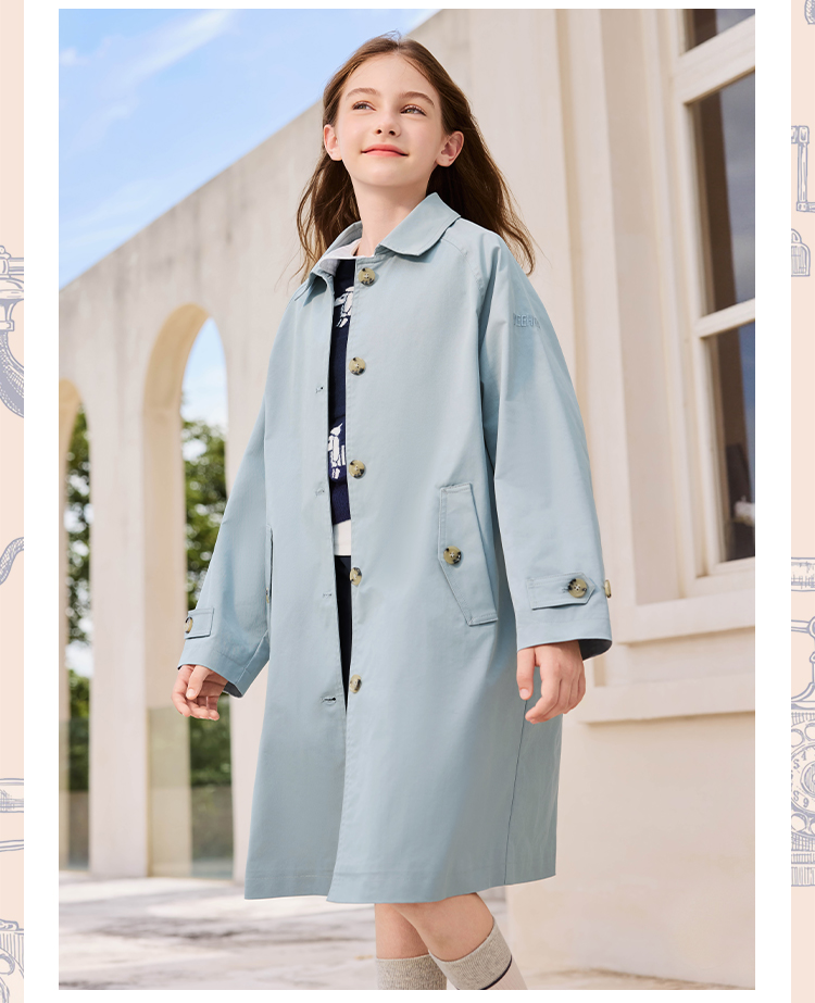 【英氏】【140-170】女童春秋中长款风衣外套