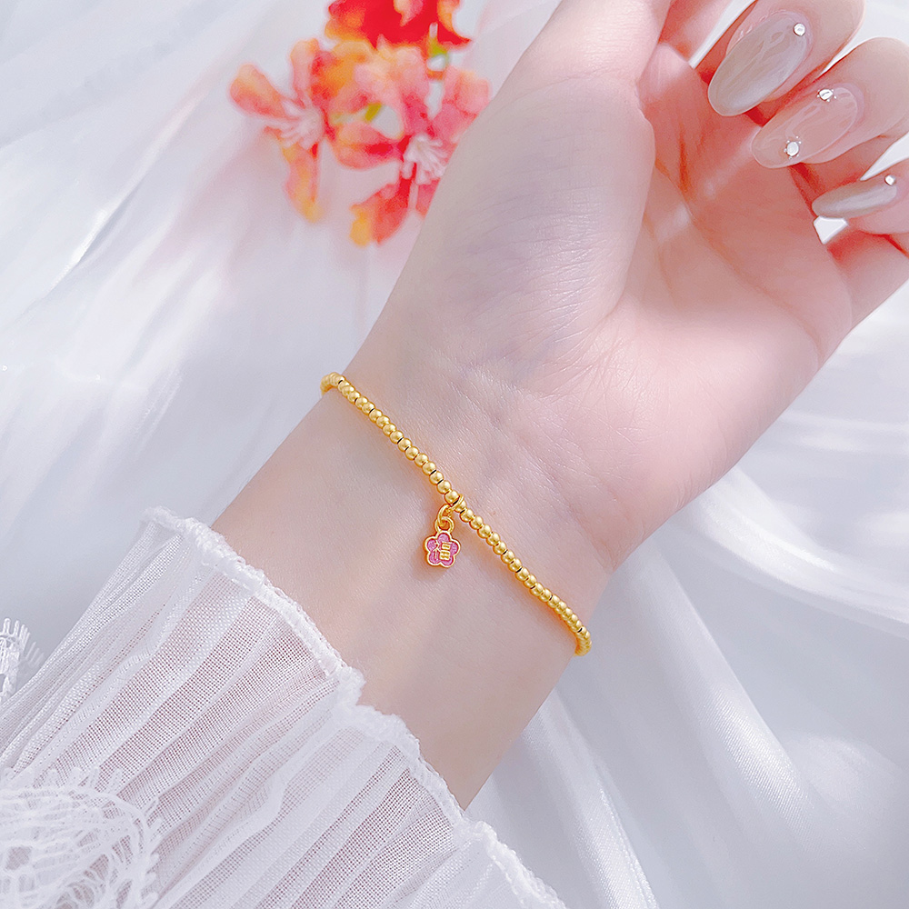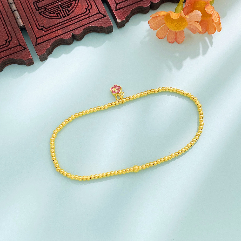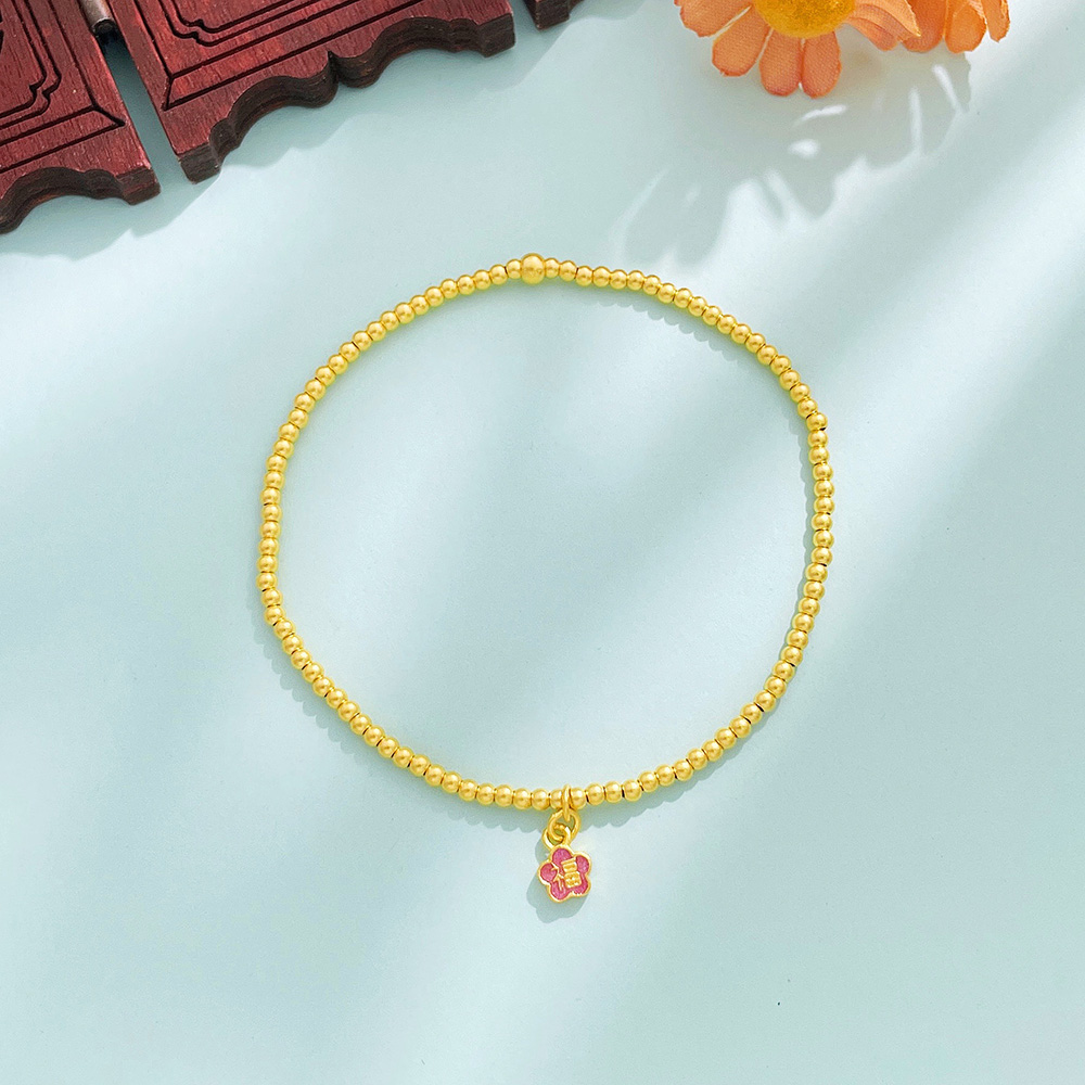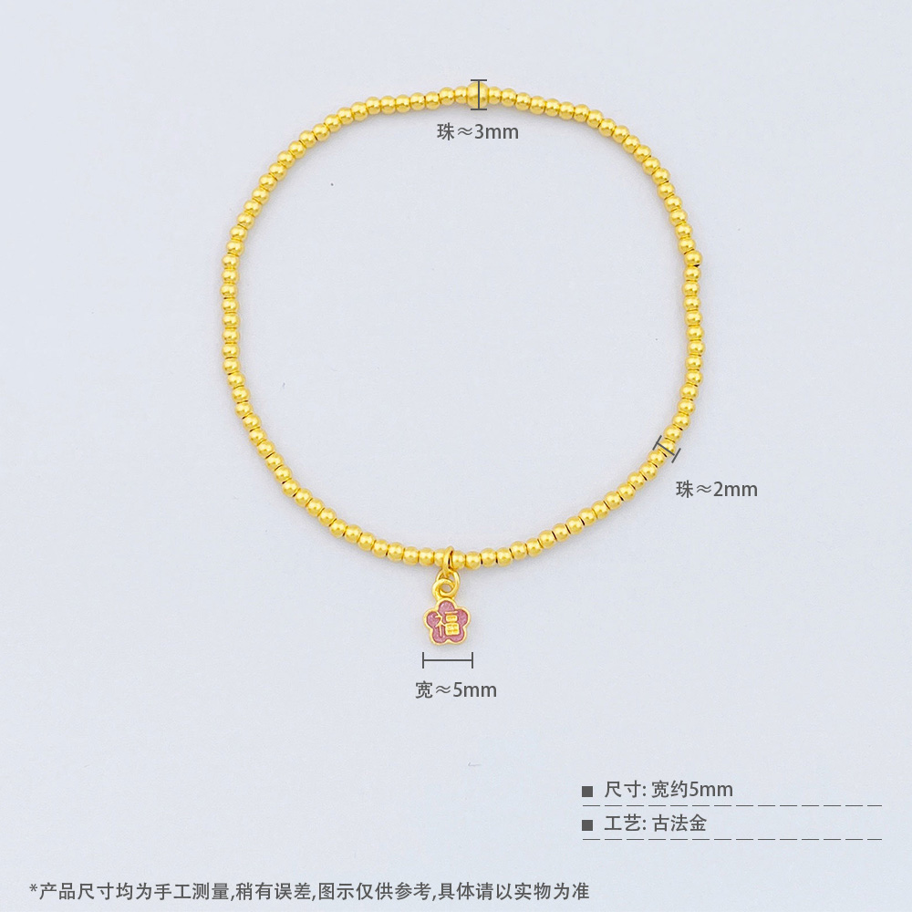 【限时克减150元】足金999 #超轻 #低温珐琅 古法空心圆珠手链福字小金花花形吊饰转运金珠弹力绳手串(AUGFSC000029)(预售产品下单后不退款不退货不换货不补差价)