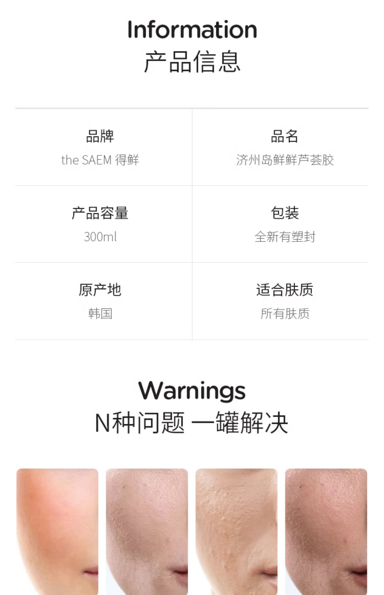 the SAEM得鲜芦荟胶正品青春痘补水保湿滋润膏睡眠面霜面膜300ml