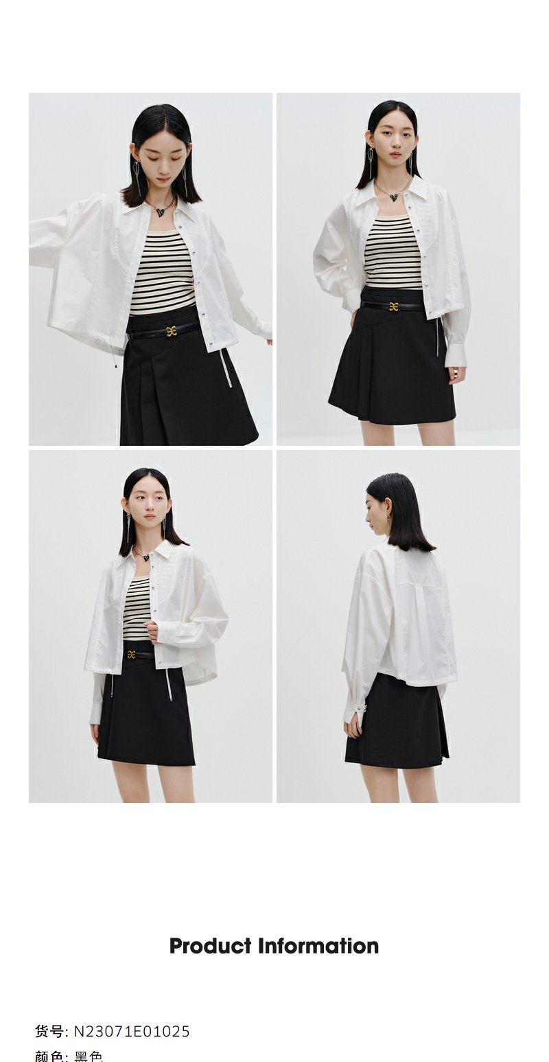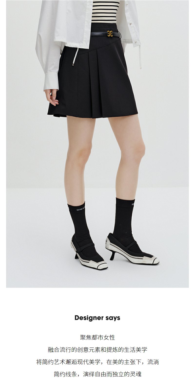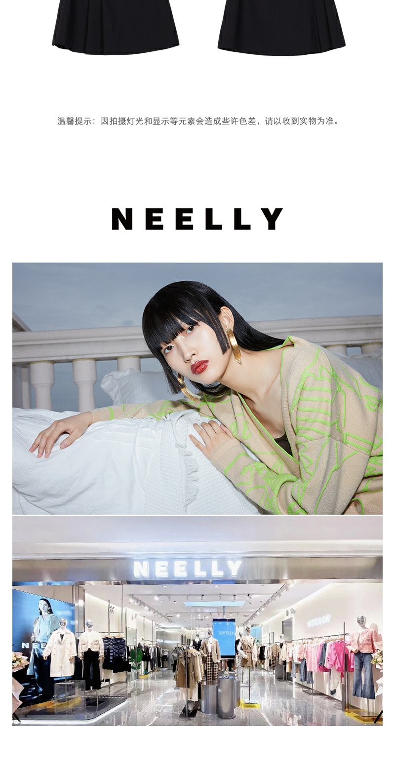 NEELLY纳俪商场同款黑色半身裙女秋季新款半百褶a字裙气质短裙N23071E01025